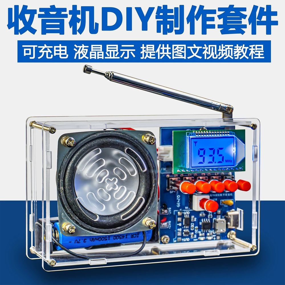 伍陆电子FM调频数字收音机套件液晶显示自动搜台可充电制作焊接