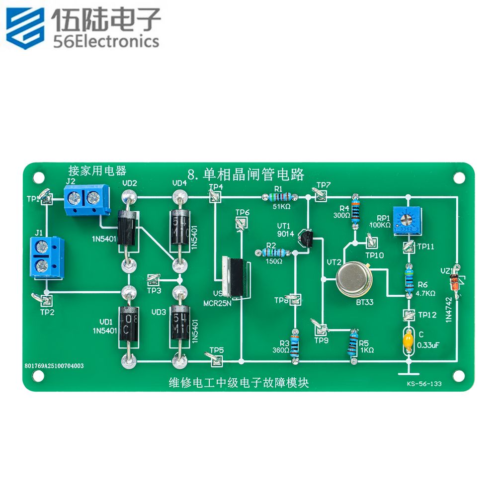 维修电工中级电子故障模块单相双向晶闸管电路套件KS-56-135