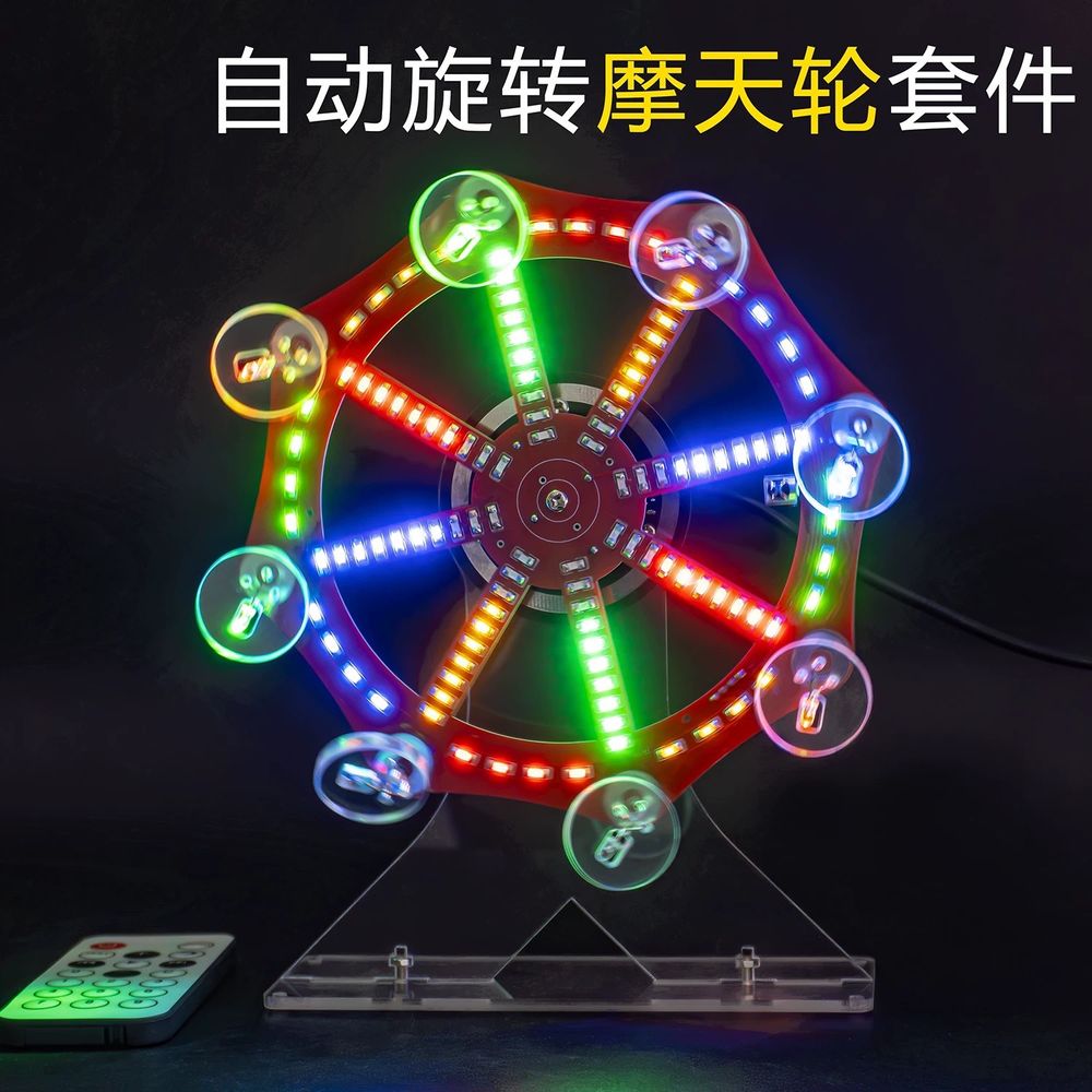 七彩电动摩天轮模型套件电子DIY趣味创意LED灯焊接散件TJ-56-675