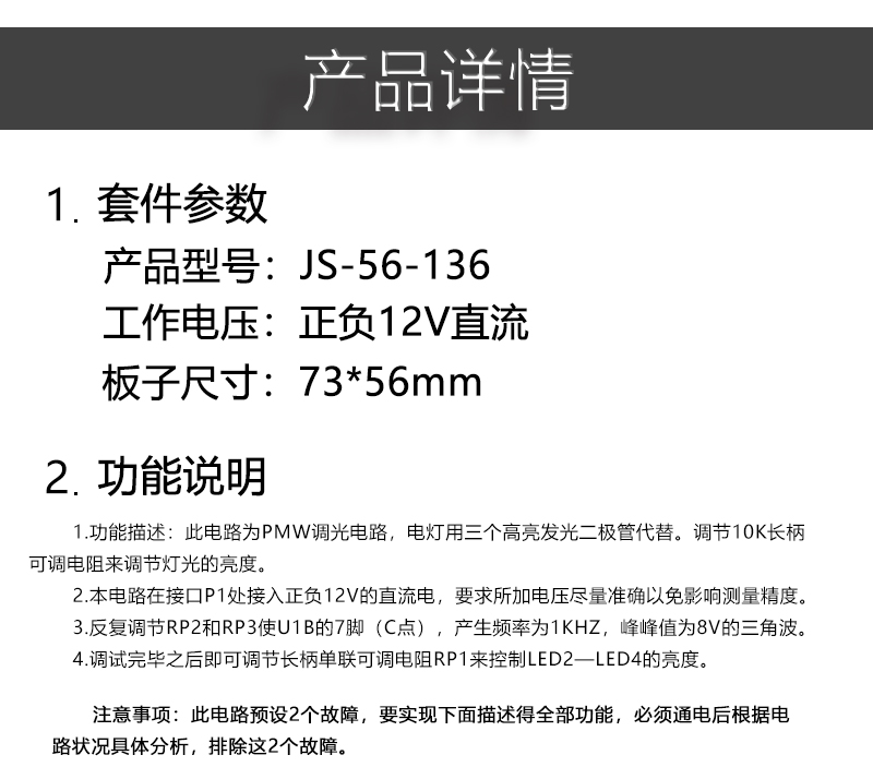 LED调光电路装配与调试焊接竞赛套件电子实训制作散件JS-56-136