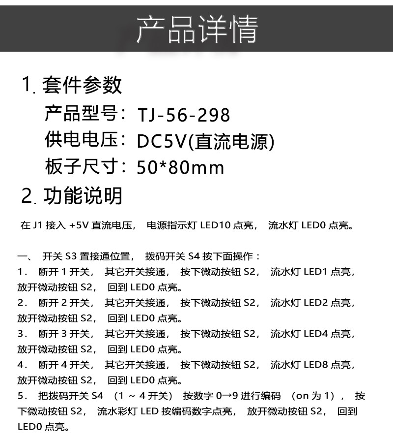 彩灯控制器电子DIY套件2017年东莞市中职业技能大赛试题TJ-56-298