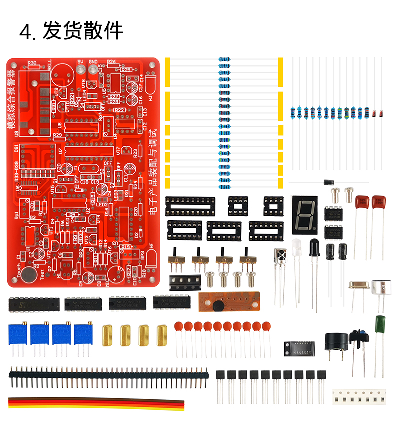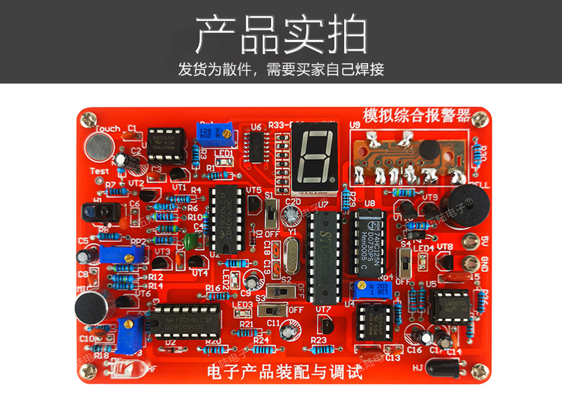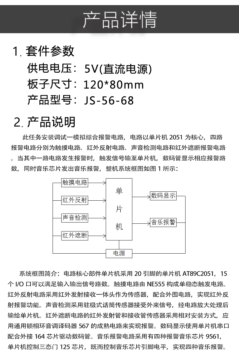 四路模拟综合报警电子电路装调与应用组装实训竞赛套件JS-56-68