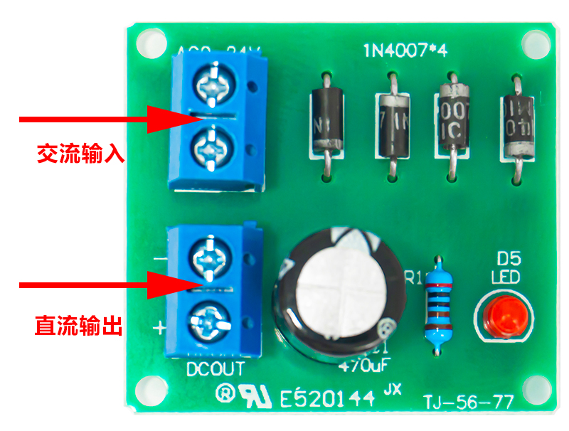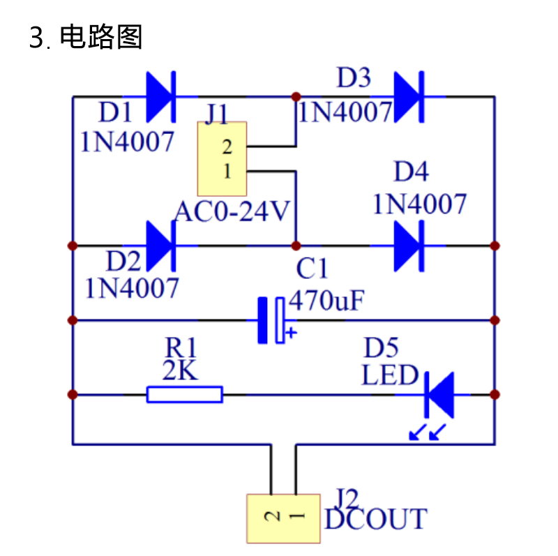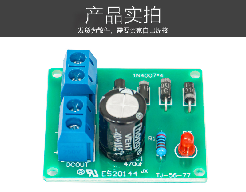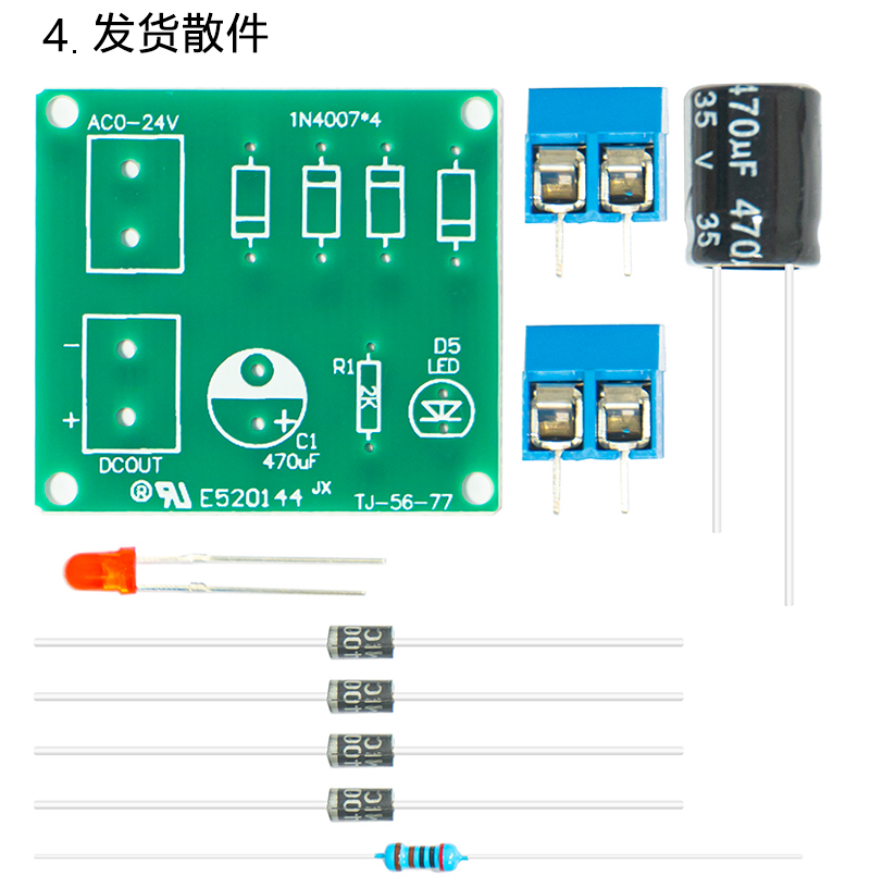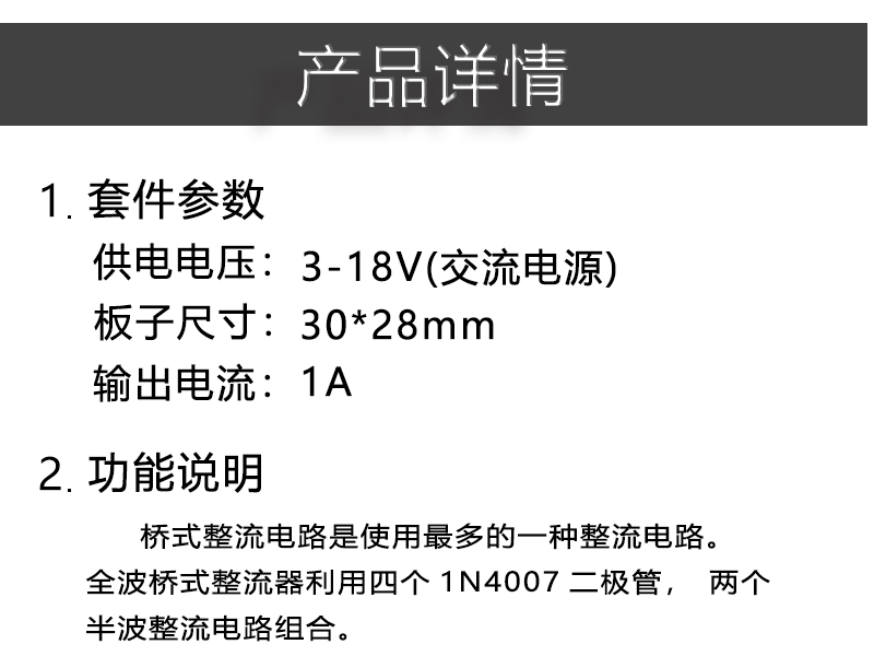 IN4007桥式整流器 单相全波 AC转DC电源转换器 电路板套件 散件