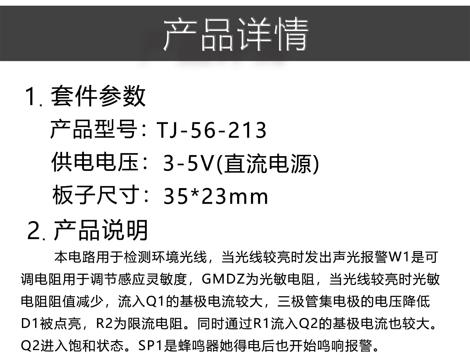 光敏声光报警器套件电子制作DIY散件手工焊接练习电路板TJ-56-213