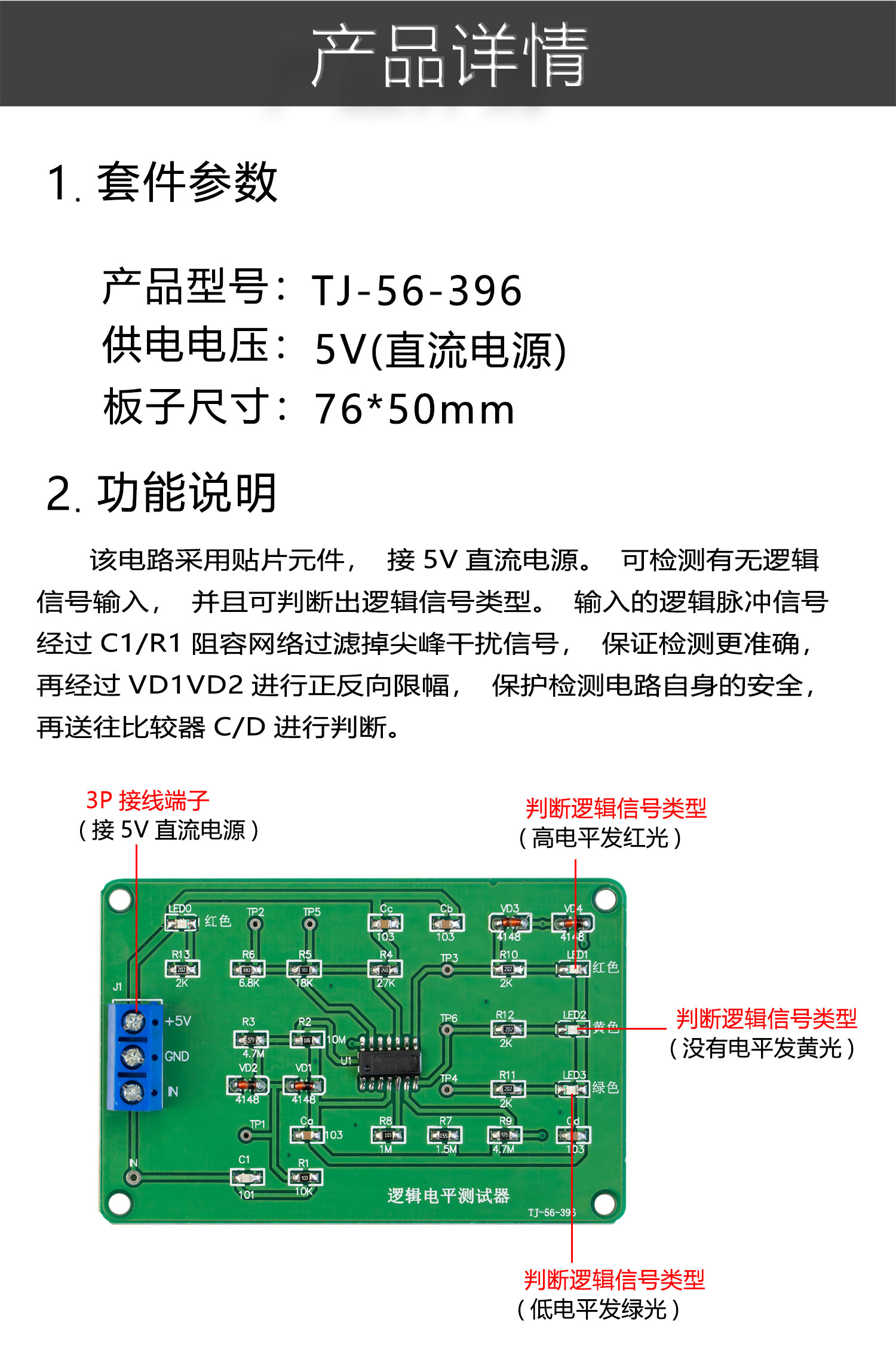 逻辑电平测试电路套件LED高低电平测试DIY电子制作散件TJ-56-396