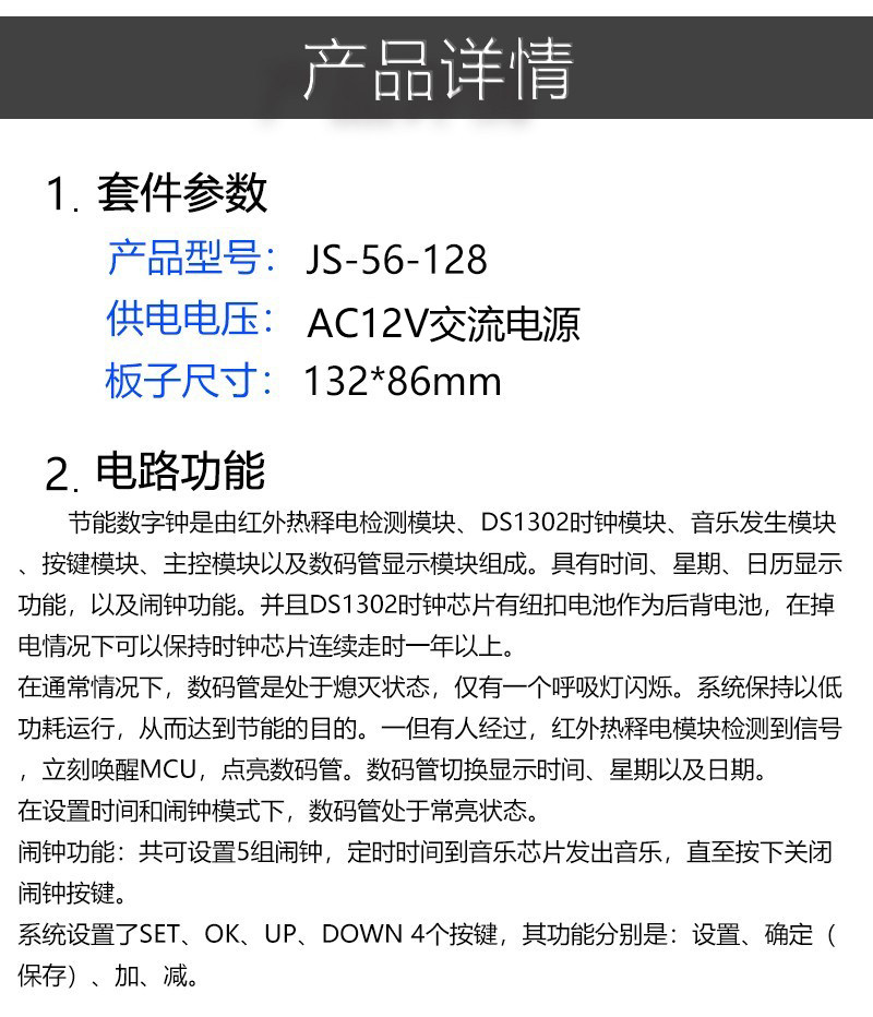 节能数字钟竞赛套件电子装配与调试焊接组装技能大赛JS-56-128