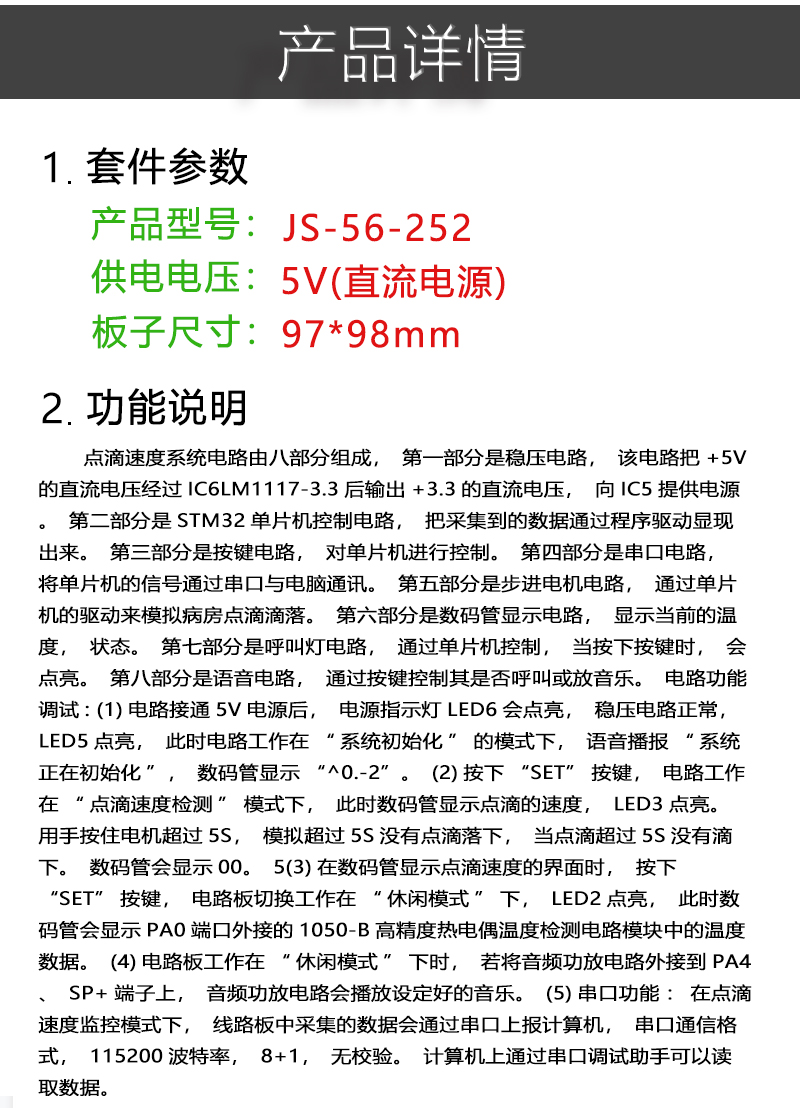 点滴速度监测系统竞赛套件电子产品设计与应用技能大赛JS-56-252