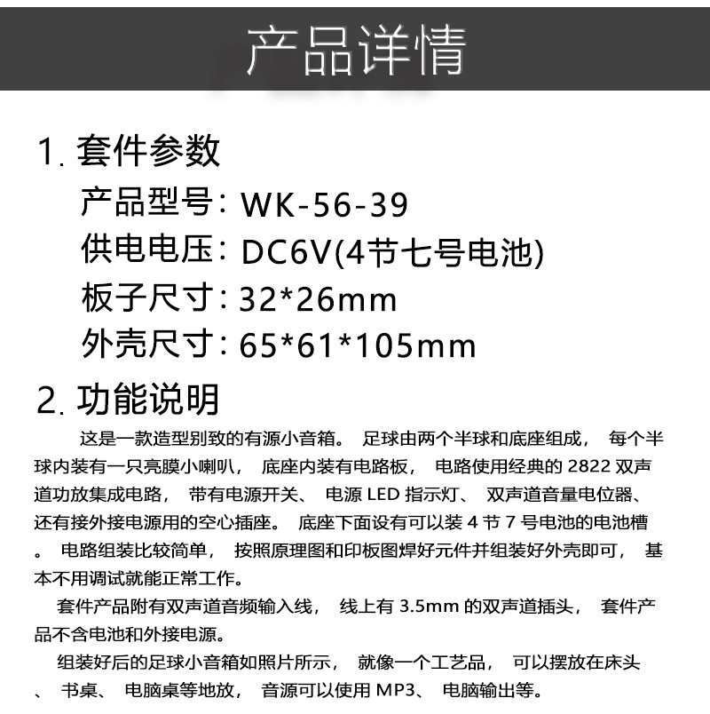 足球造型有源音箱DIY焊接产品套件电子制作迷你音响教学实训散件