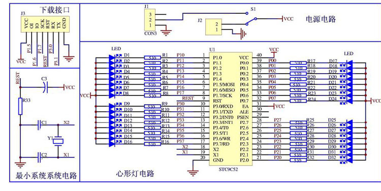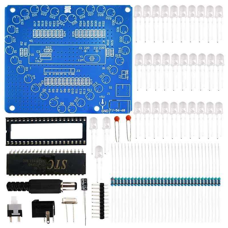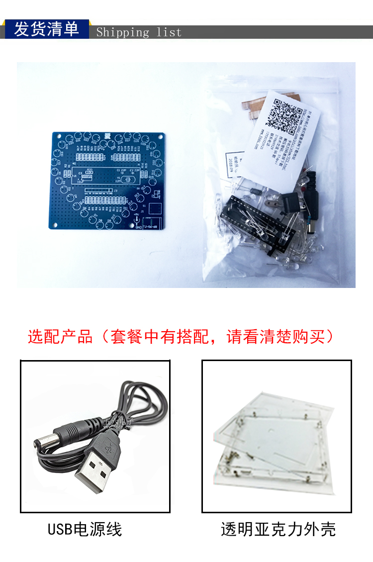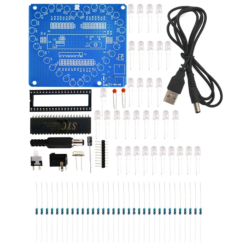七彩炫光51单片机心形流水灯DIY套件LED爱心电子制作实训组装散件