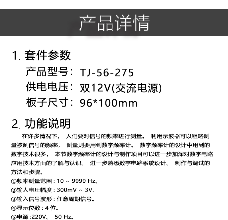 数字频率计的设计与制作套件电子DIY数字电路课程设计TJ-56-275
