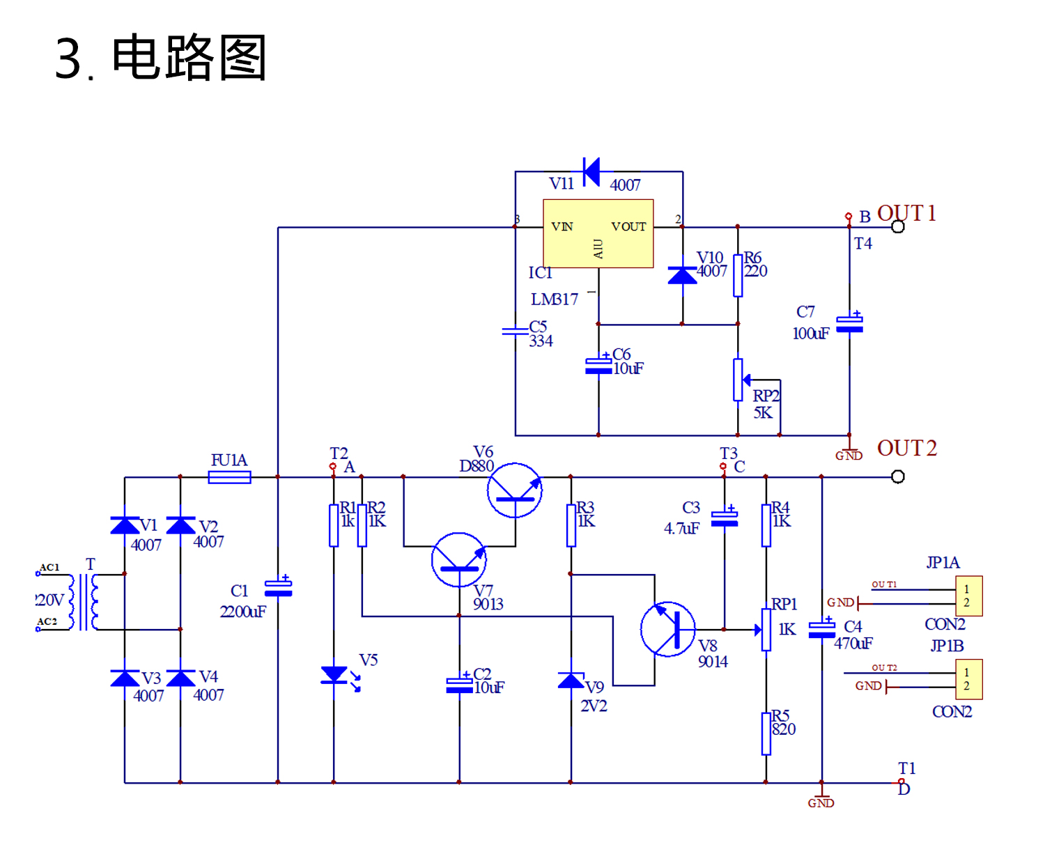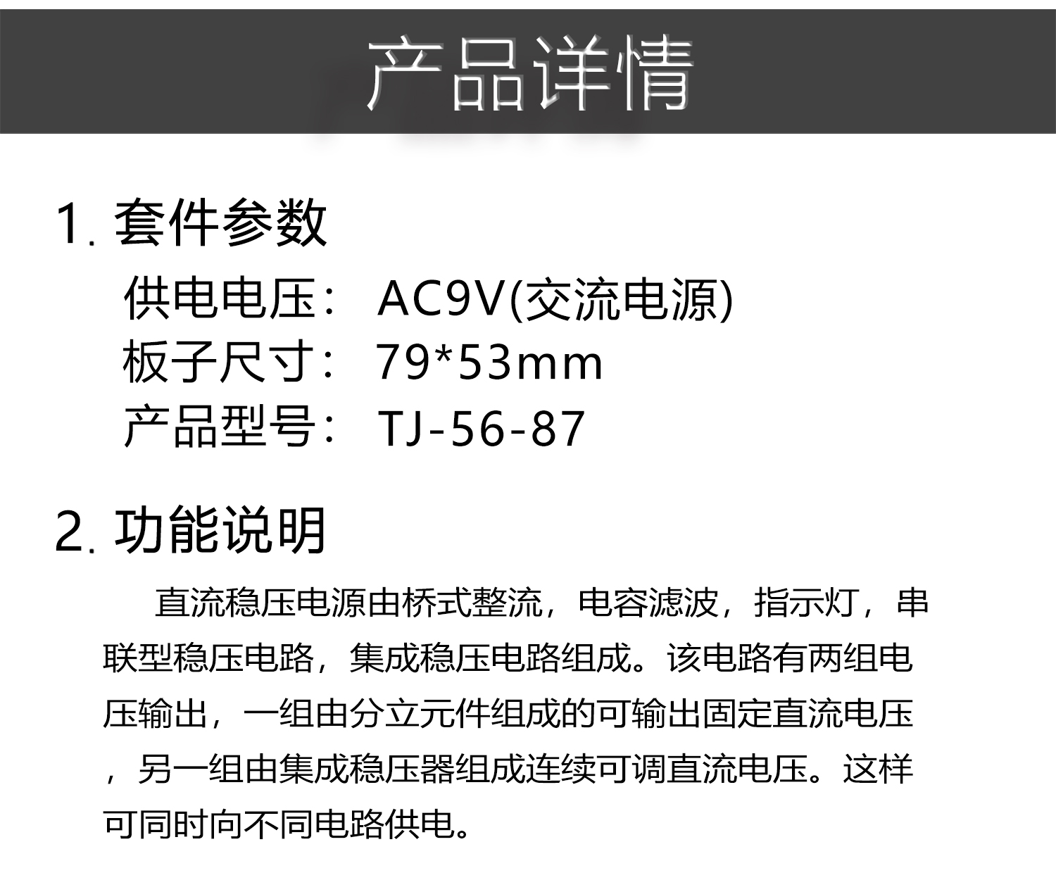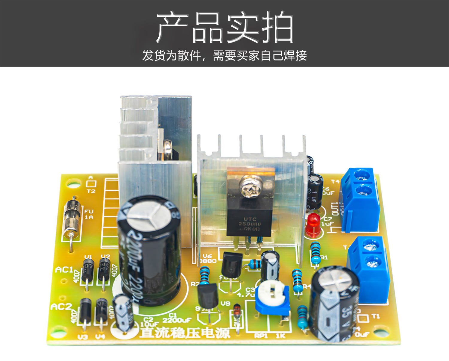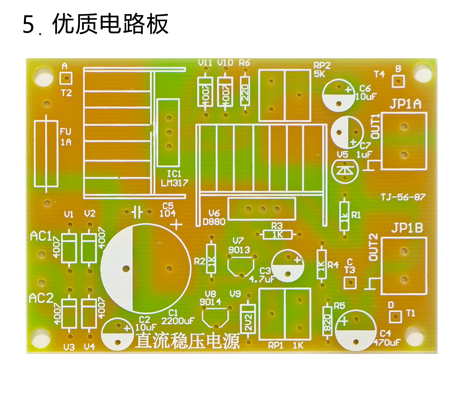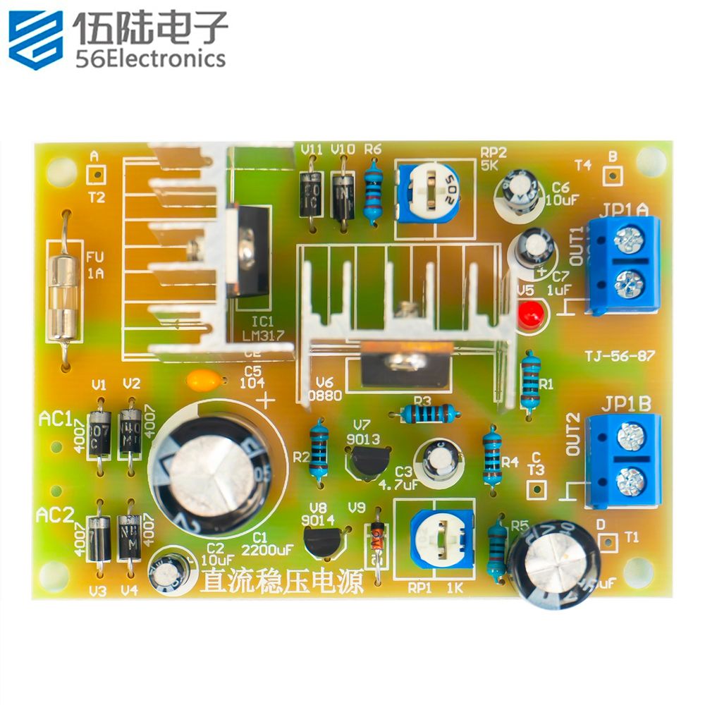 晶体管串联型稳压+LM317可调直流稳压电源DIY电子套件TJ-56-87