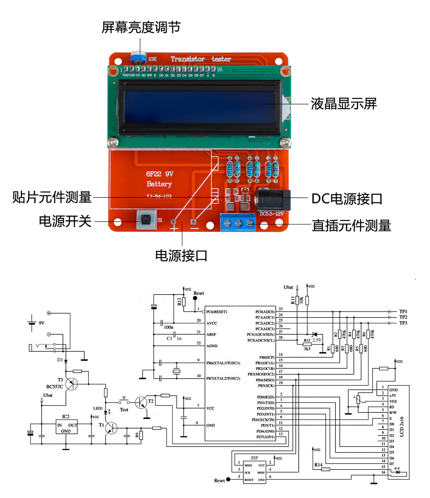 M8晶体管测试仪测电阻电容三极管电感ESR表电子DIY套件TJ-56-102