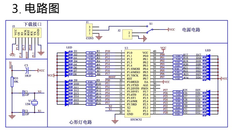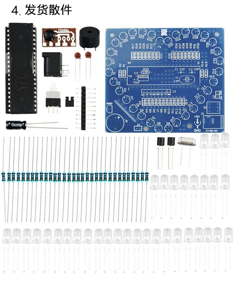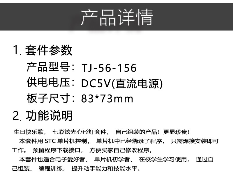 音乐七彩炫光爱心灯套件单片机心形灯电子制作DIY散件TJ-56-156