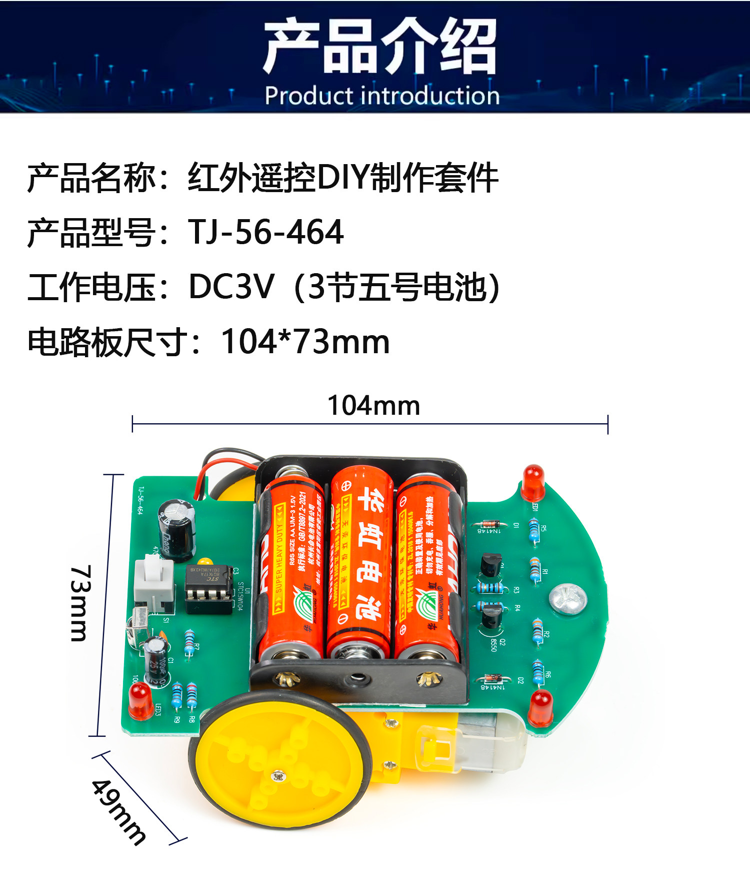 红外遥控智能小车套件电子制作焊接练习电路组装DIY散件TJ-56-464