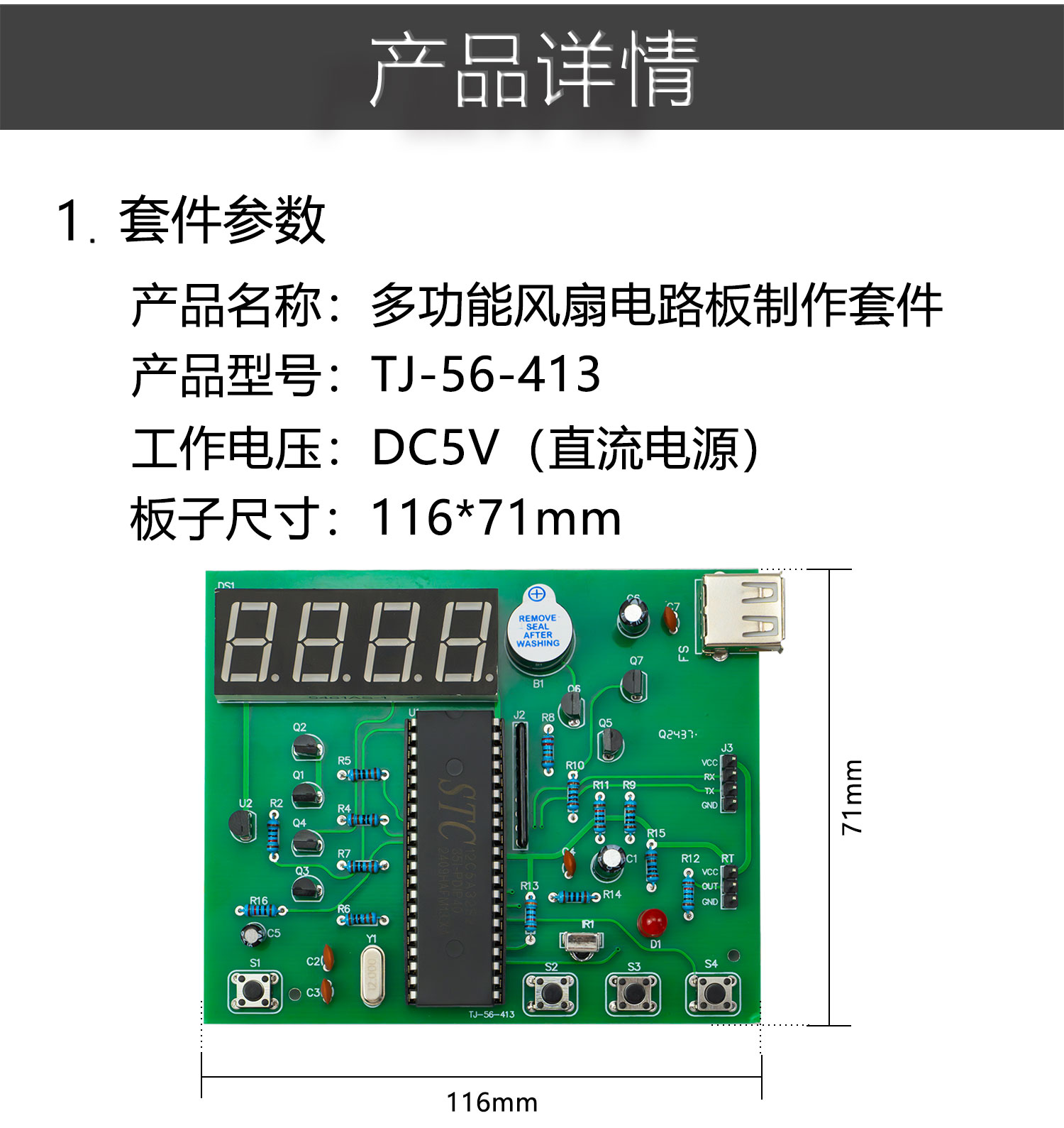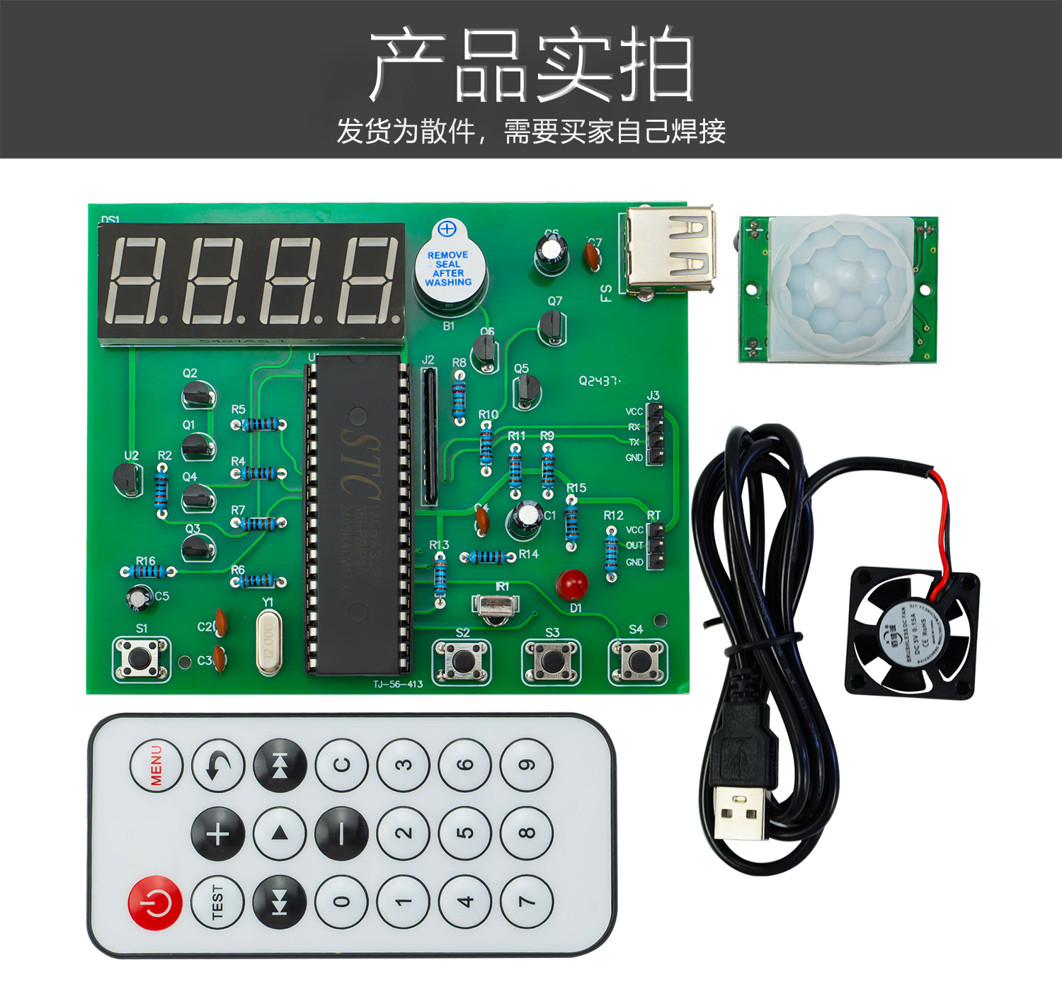 多功能风扇DIY电子套件18B20温控51单片机组装焊接练习TJ-56-413