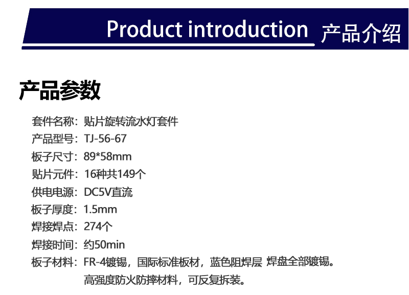 贴片旋转流水灯DIY电子套件焊接练习板技能训练教学实训TJ-56-67