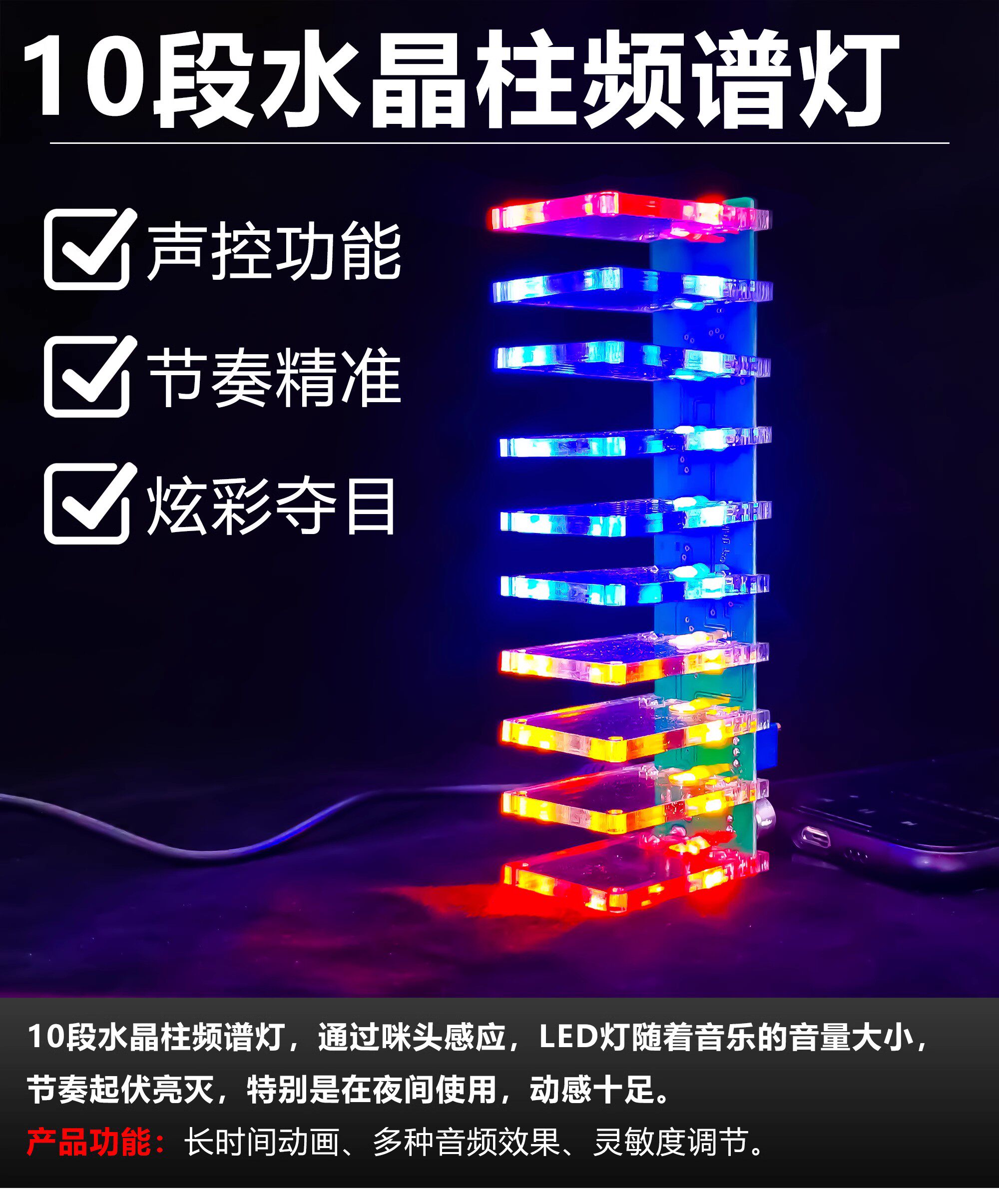 声控水晶柱套件音乐频谱电子制作DIY焊接练习组装电路板TJ-56-143