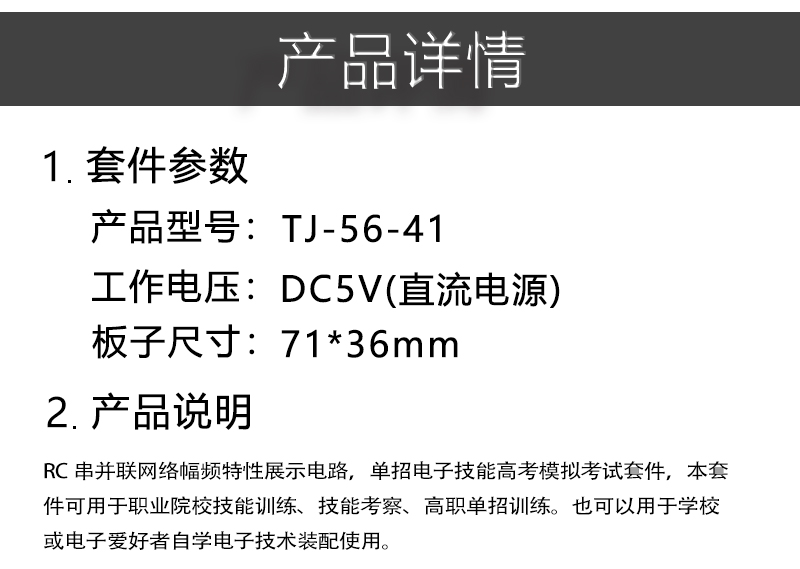 RC串并联网络幅频特性展示电路套件电子技能高考焊接练习TJ-56-41