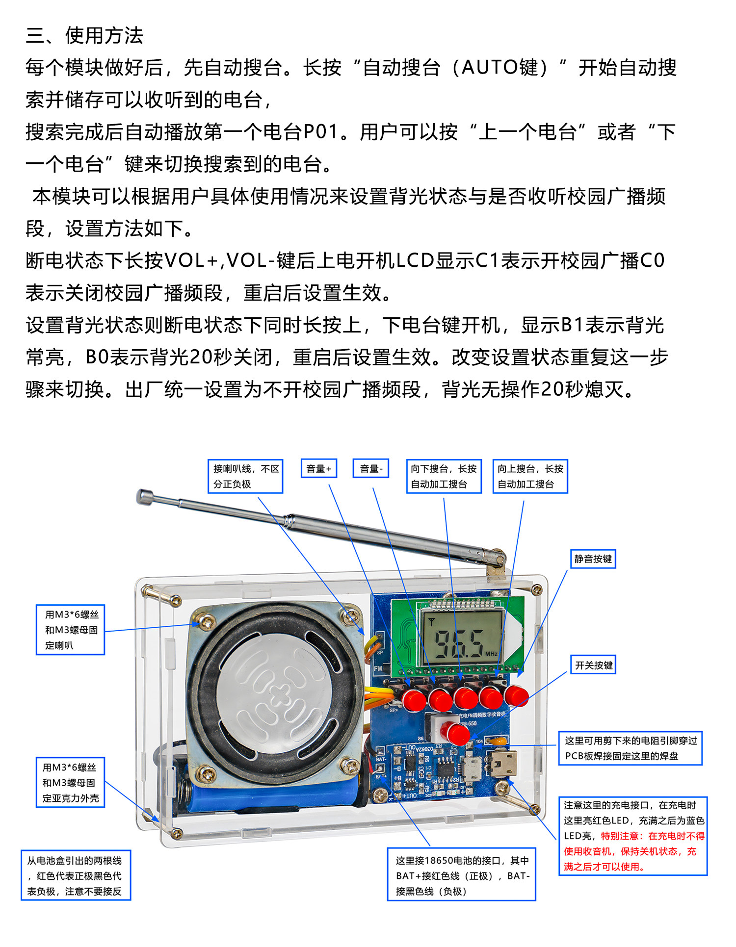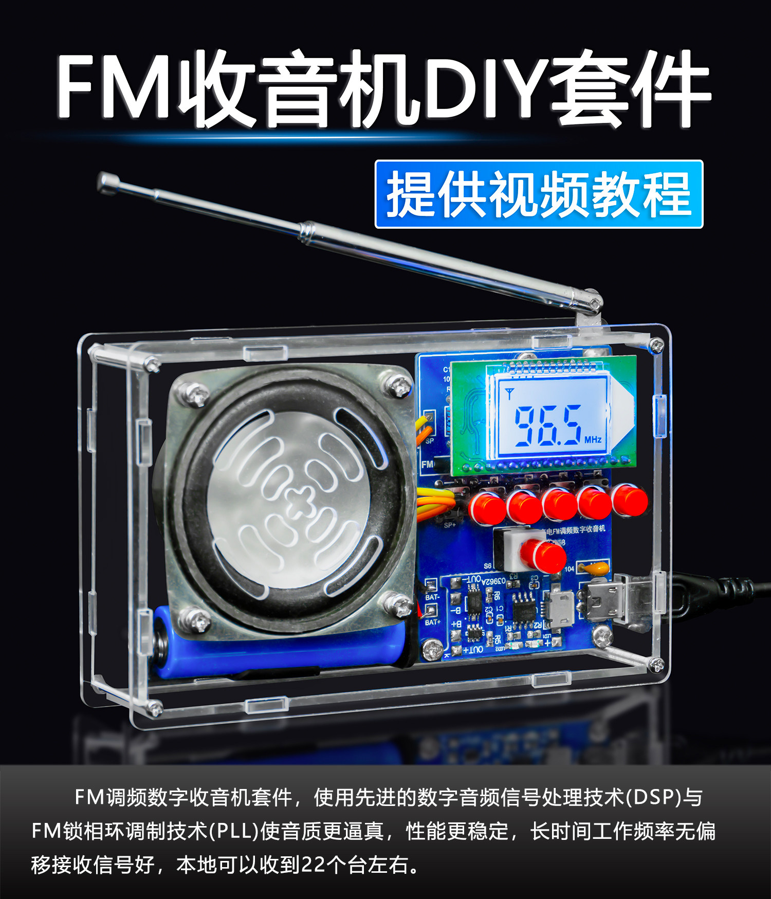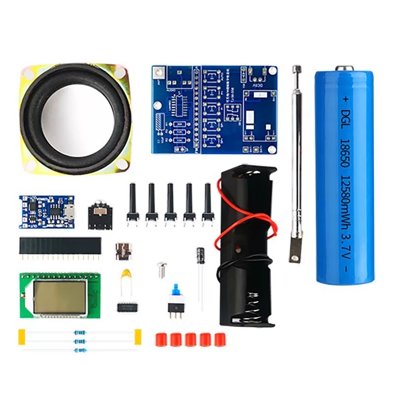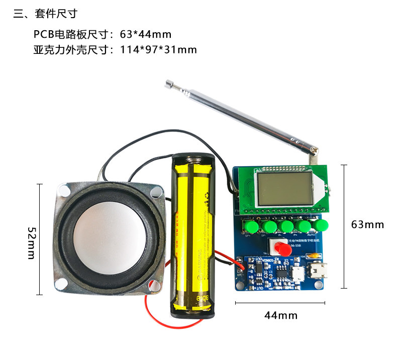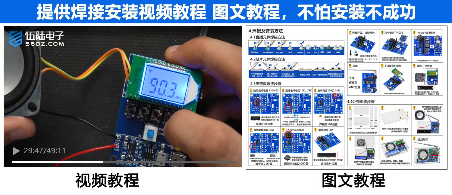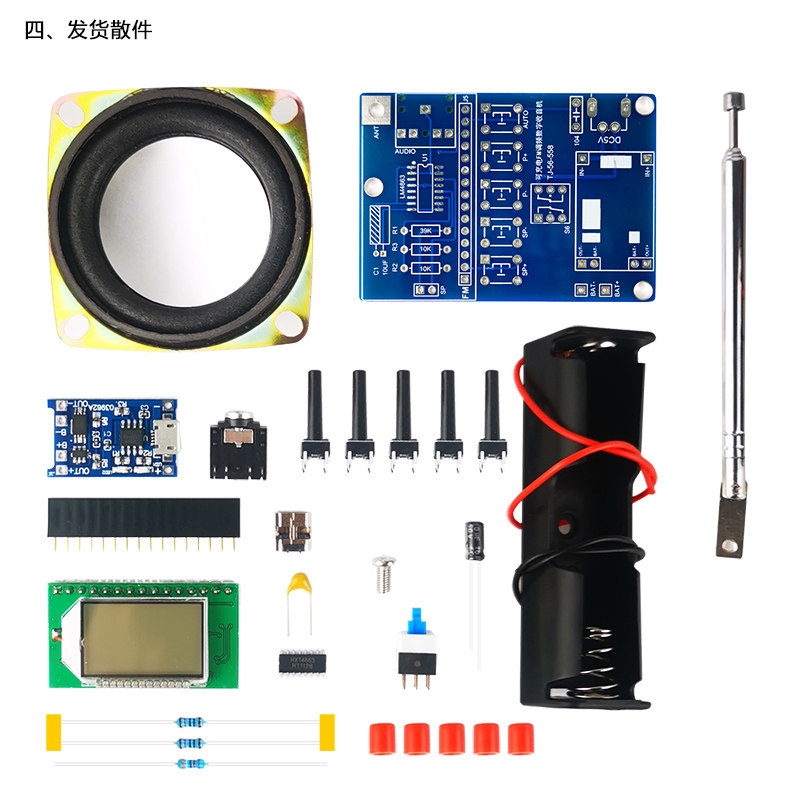 伍陆电子FM调频数字收音机套件液晶显示自动搜台可充电制作焊接