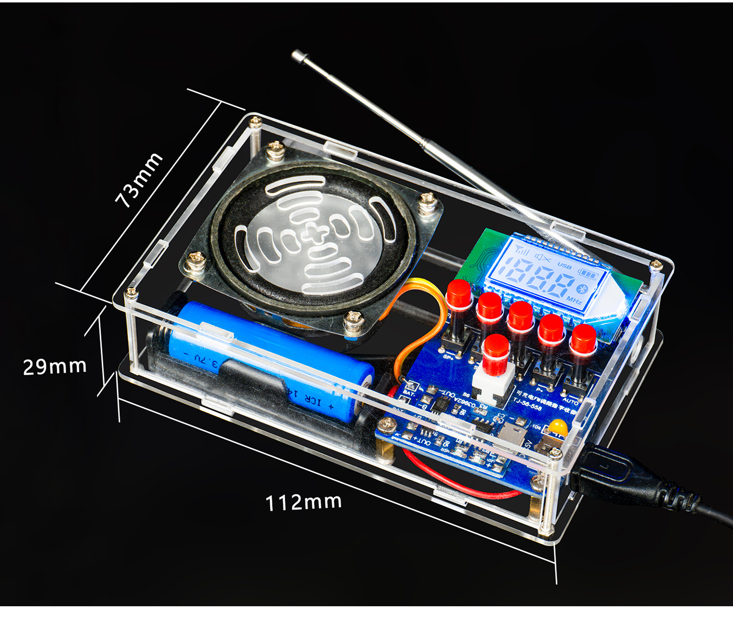 套件+锂电池+喇叭+亚克力外壳
