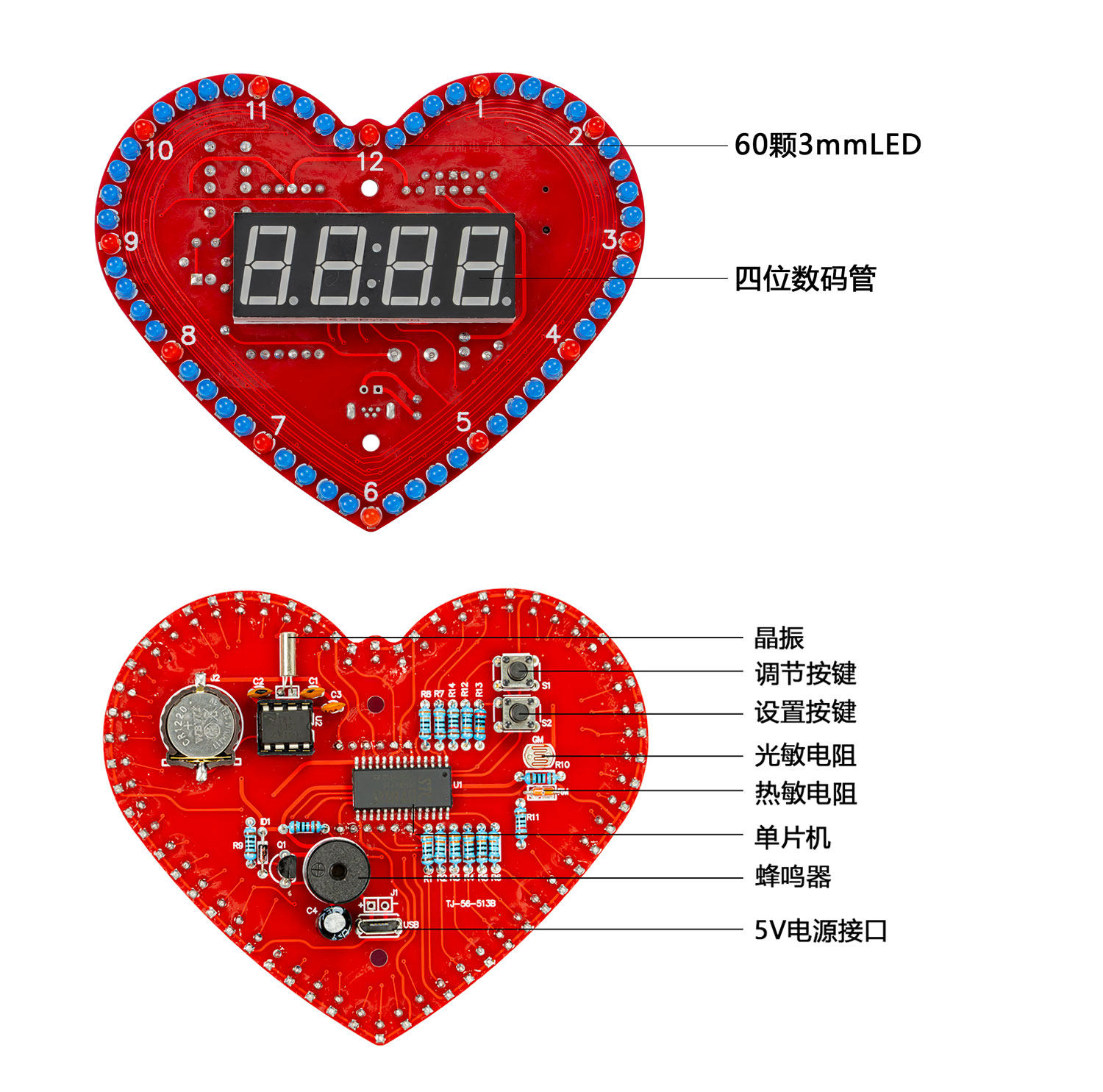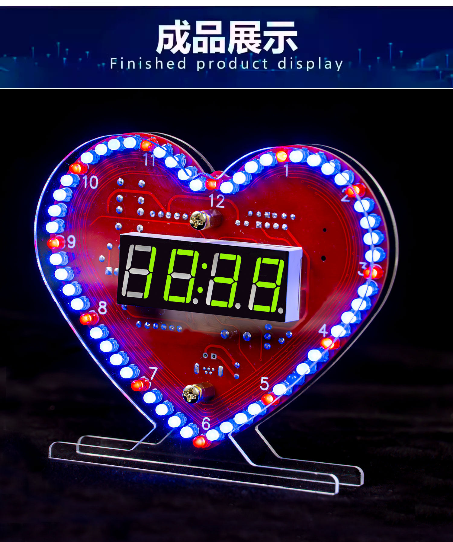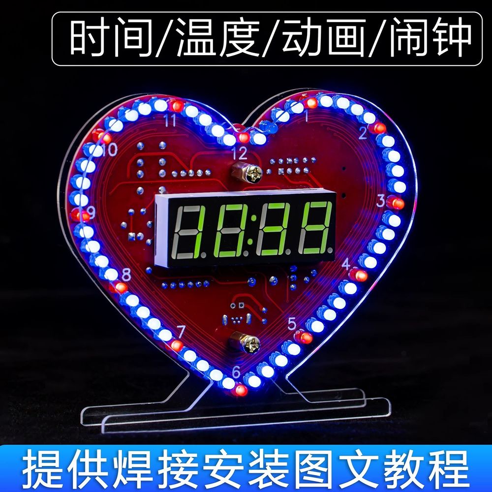 心型旋转LED数字时钟温度显示多种动画DIY电子套件焊接TJ-56-513B