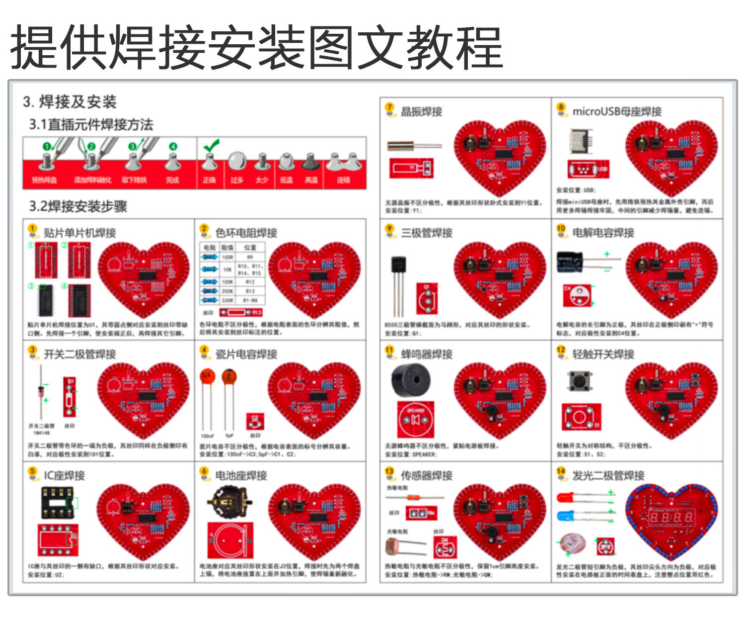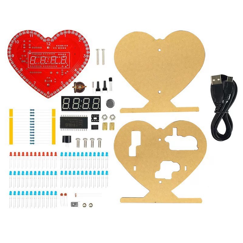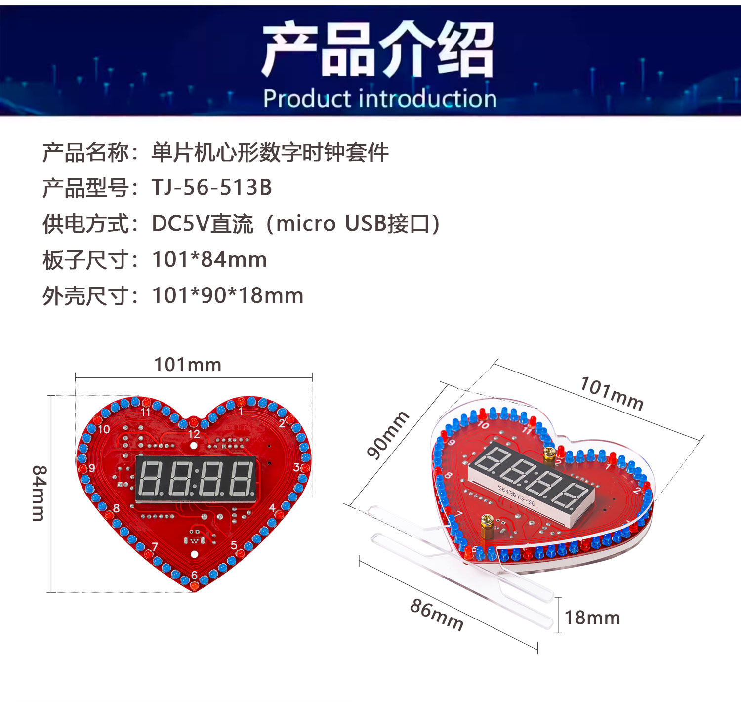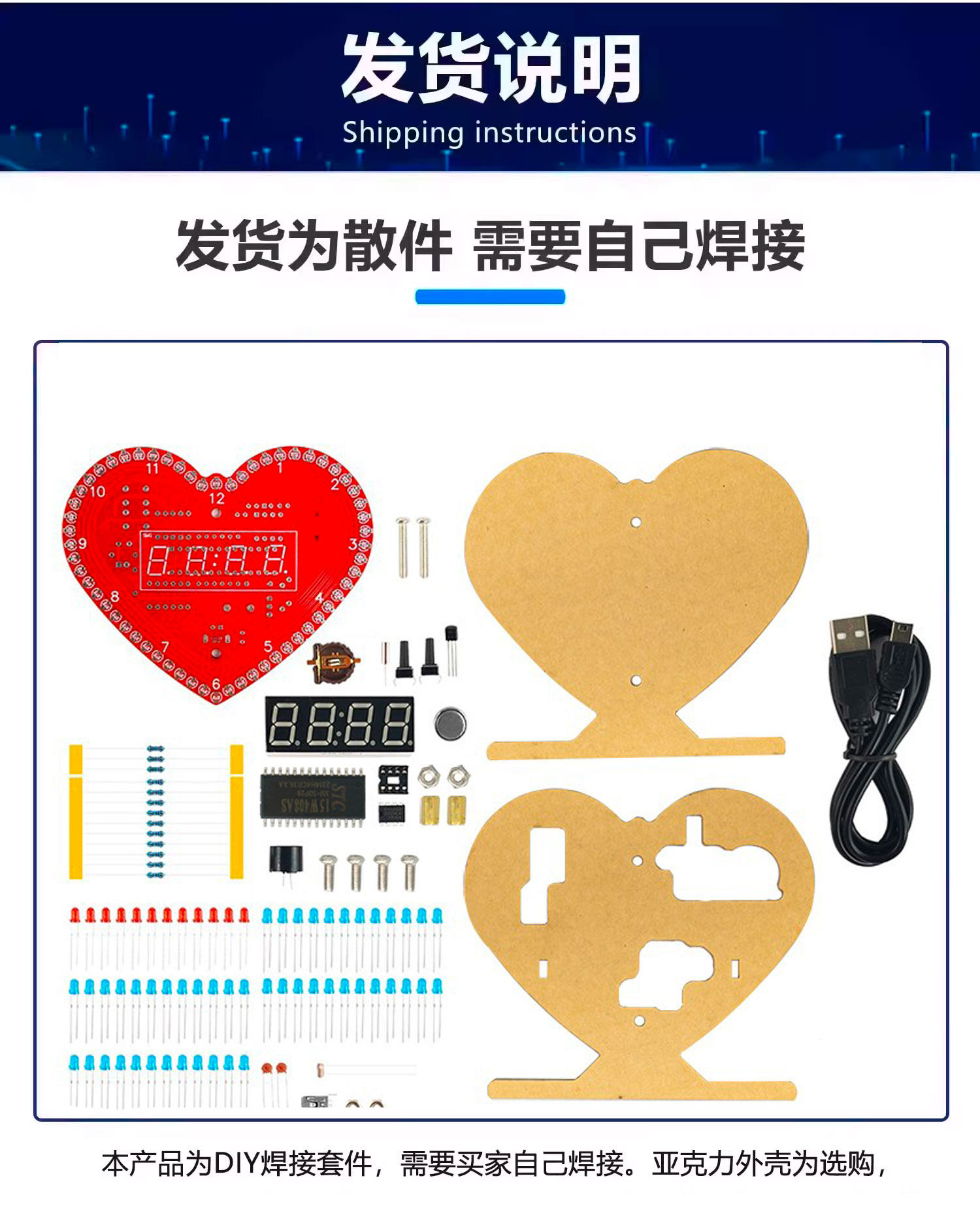 心型旋转LED数字时钟温度显示多种动画DIY电子套件焊接TJ-56-513B