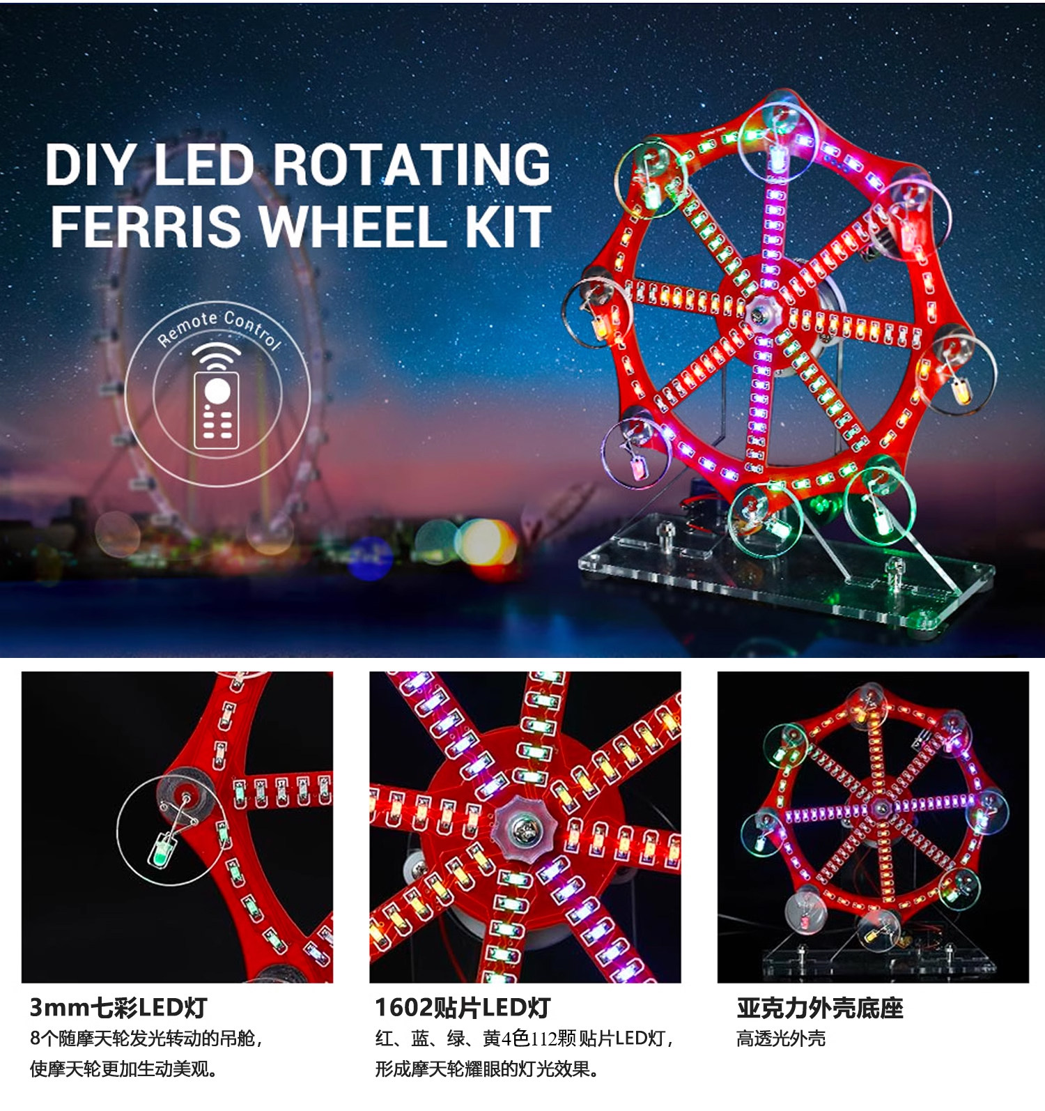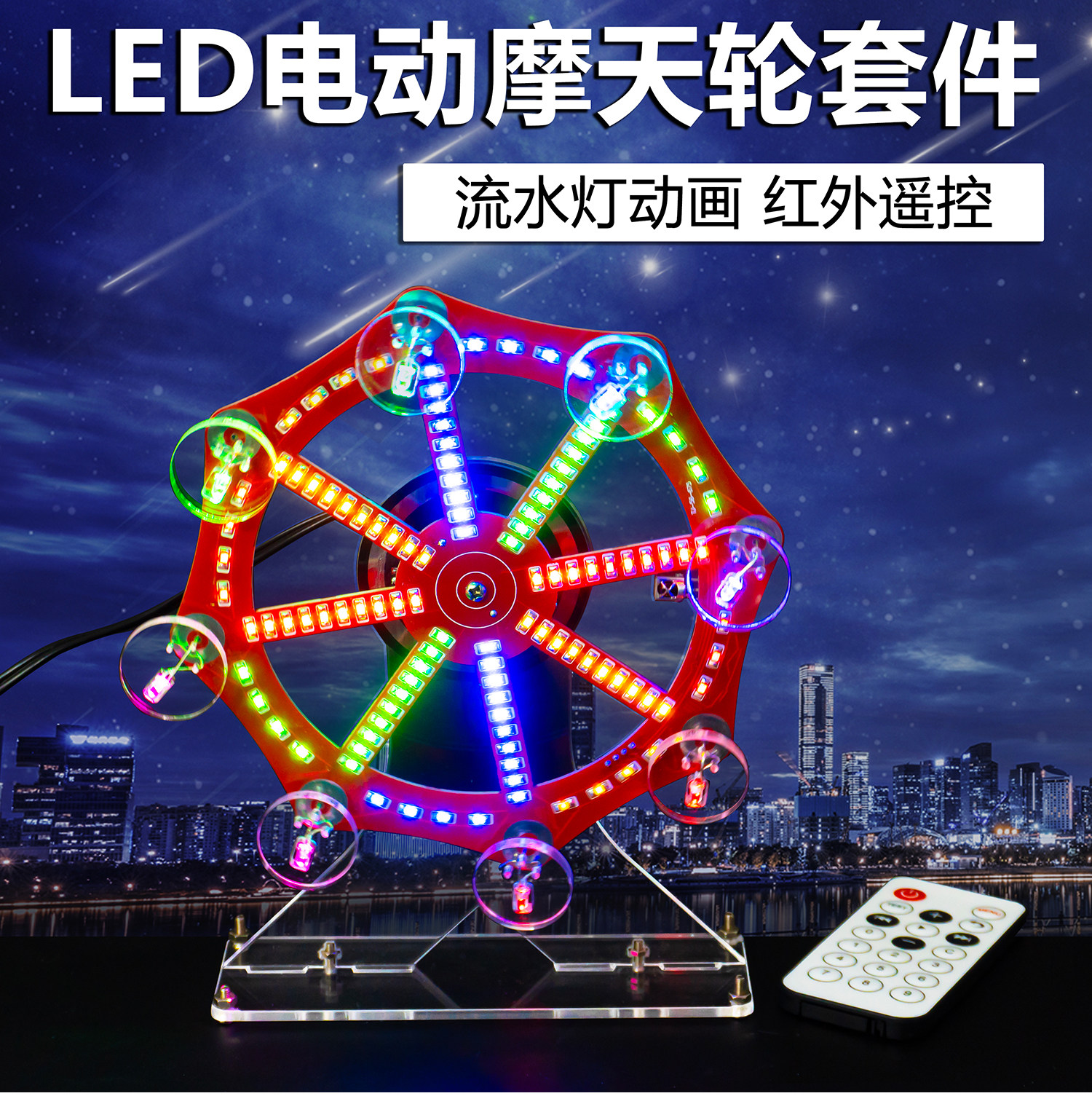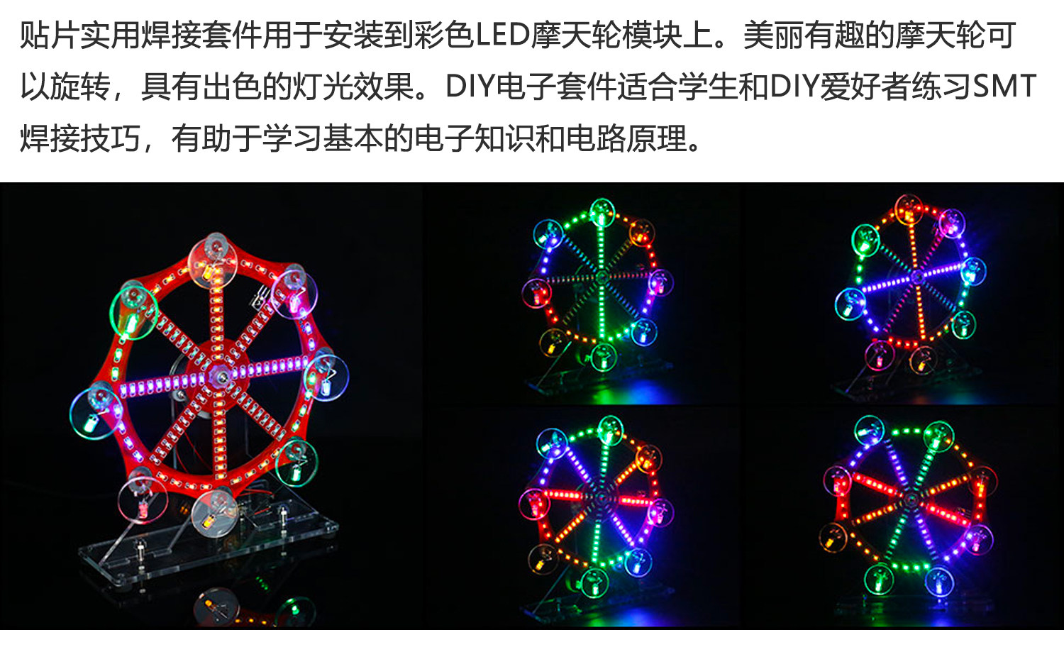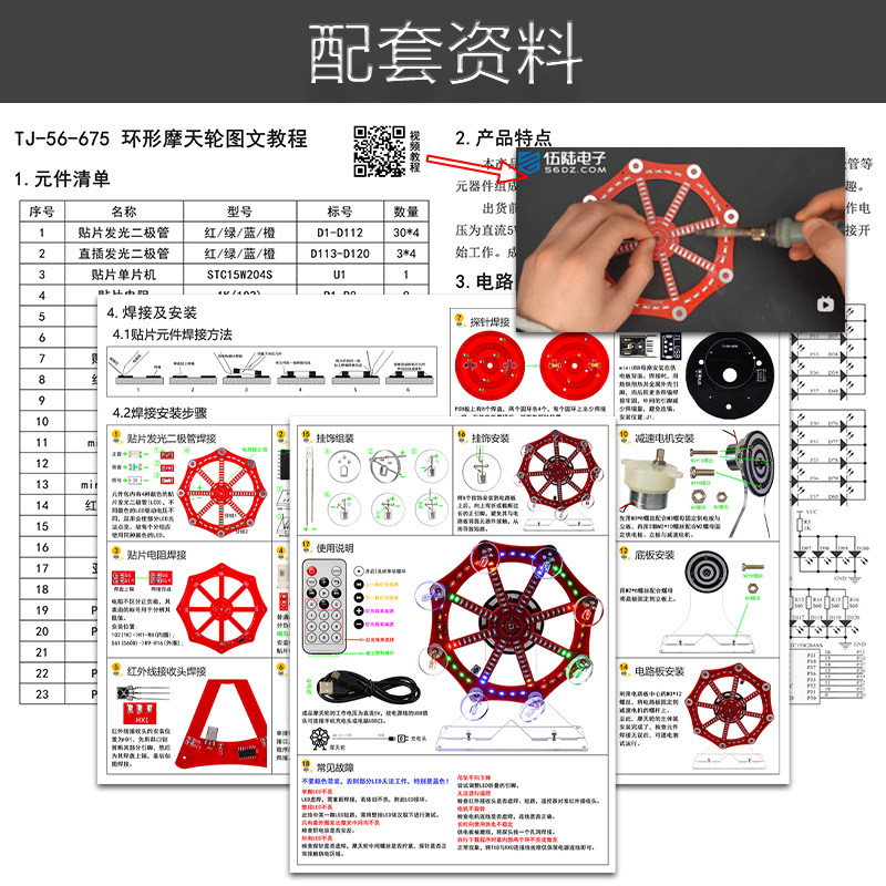 七彩电动摩天轮模型套件电子DIY趣味创意LED灯焊接散件TJ-56-675