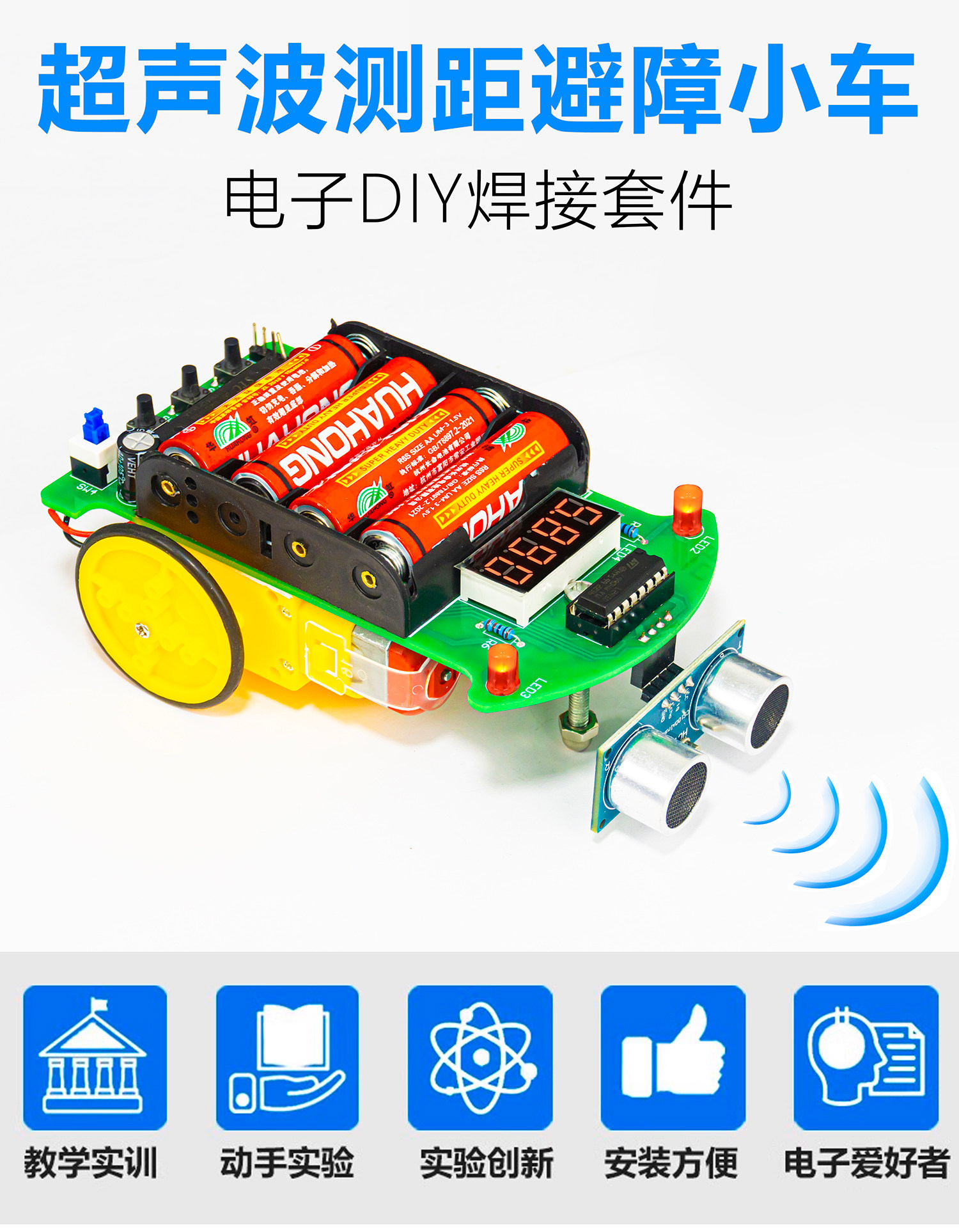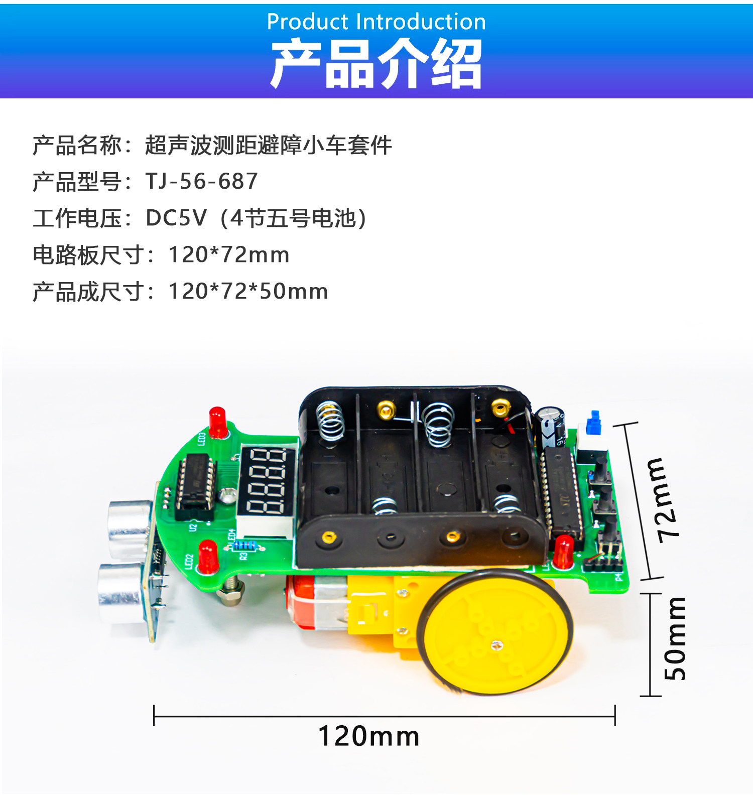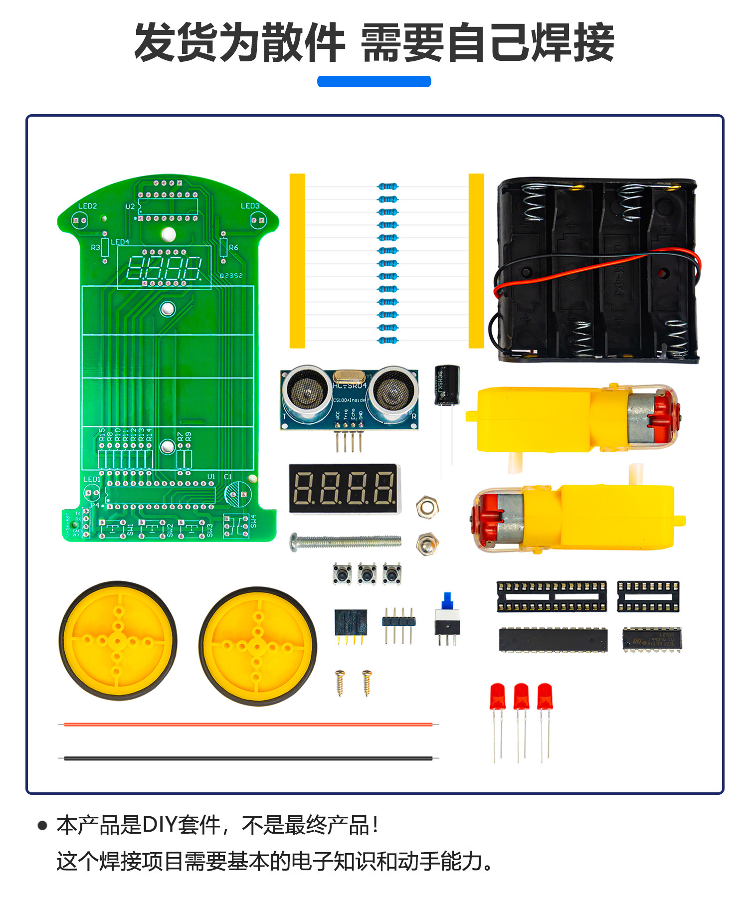 **声波测距避障小车焊接套件单片机智能车编程科技制作TJ-56-687