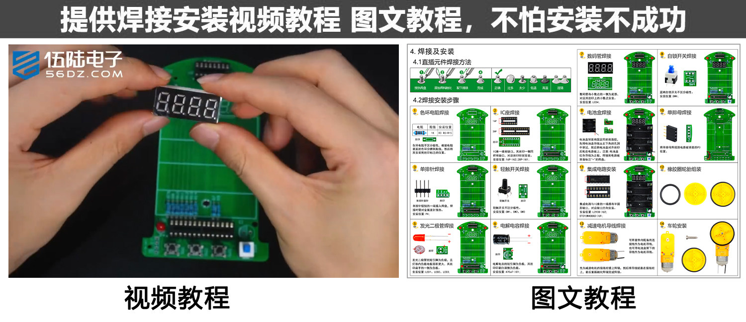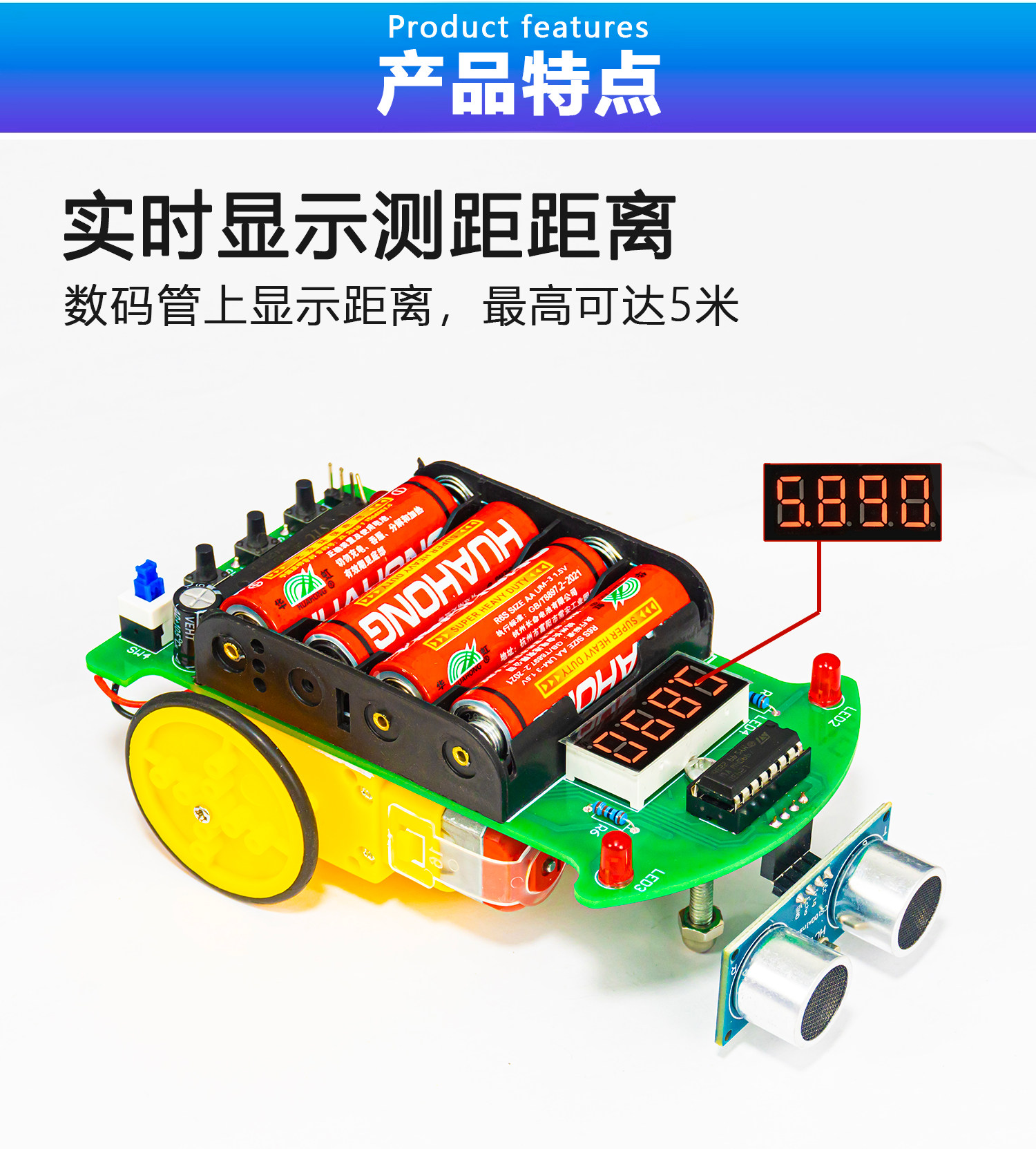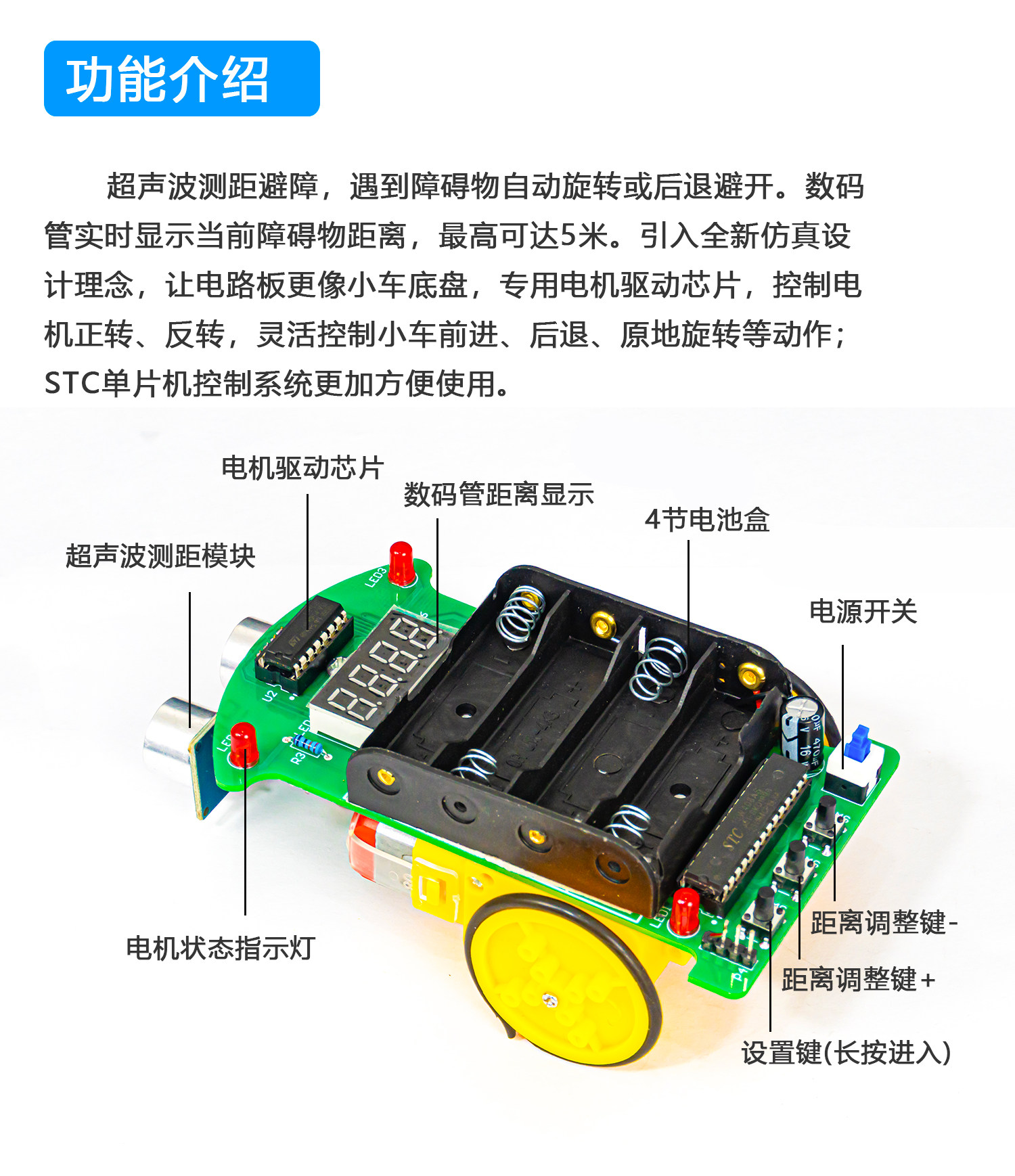 **声波测距避障小车焊接套件单片机智能车编程科技制作TJ-56-687