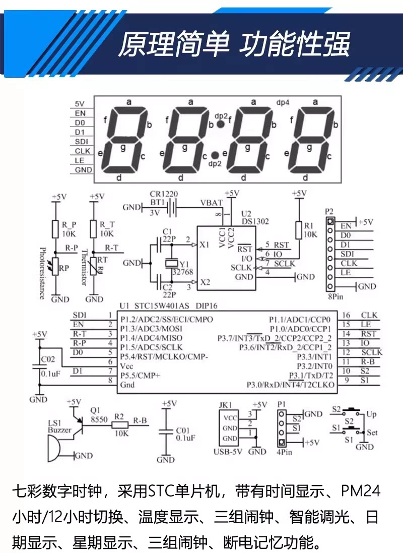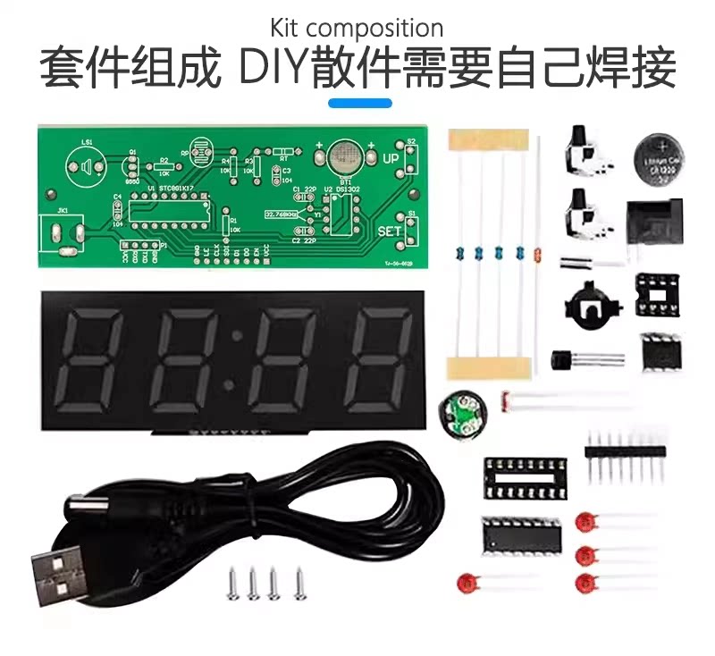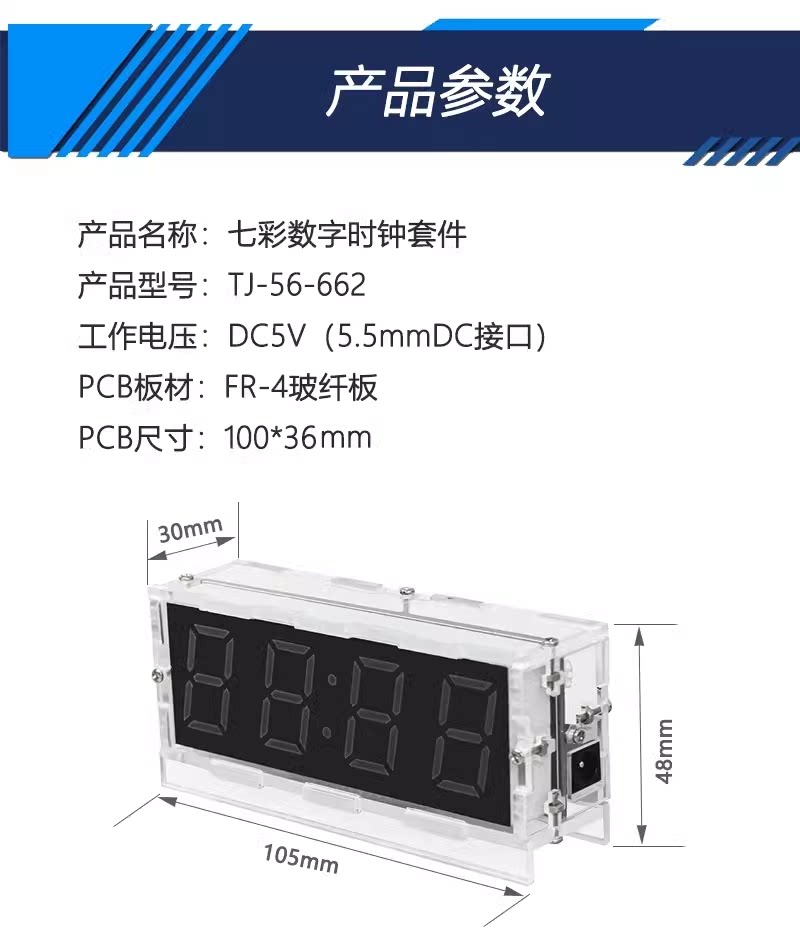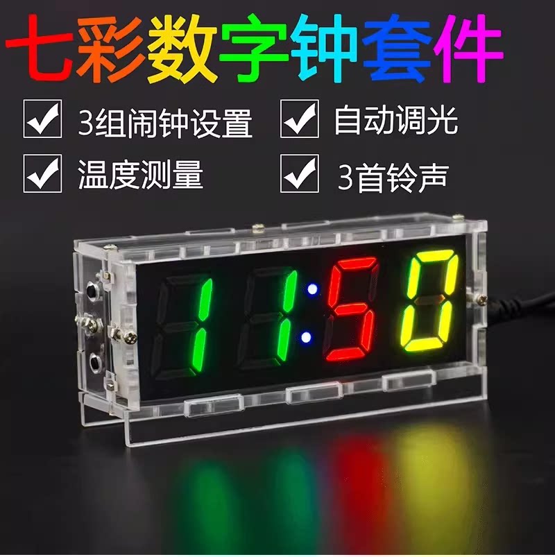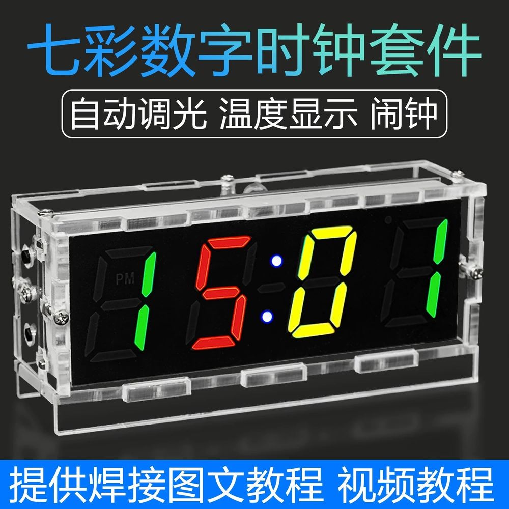 伍陆电子七彩数字时钟套件RGB幻彩钟单片机焊接练习DIY组装实训