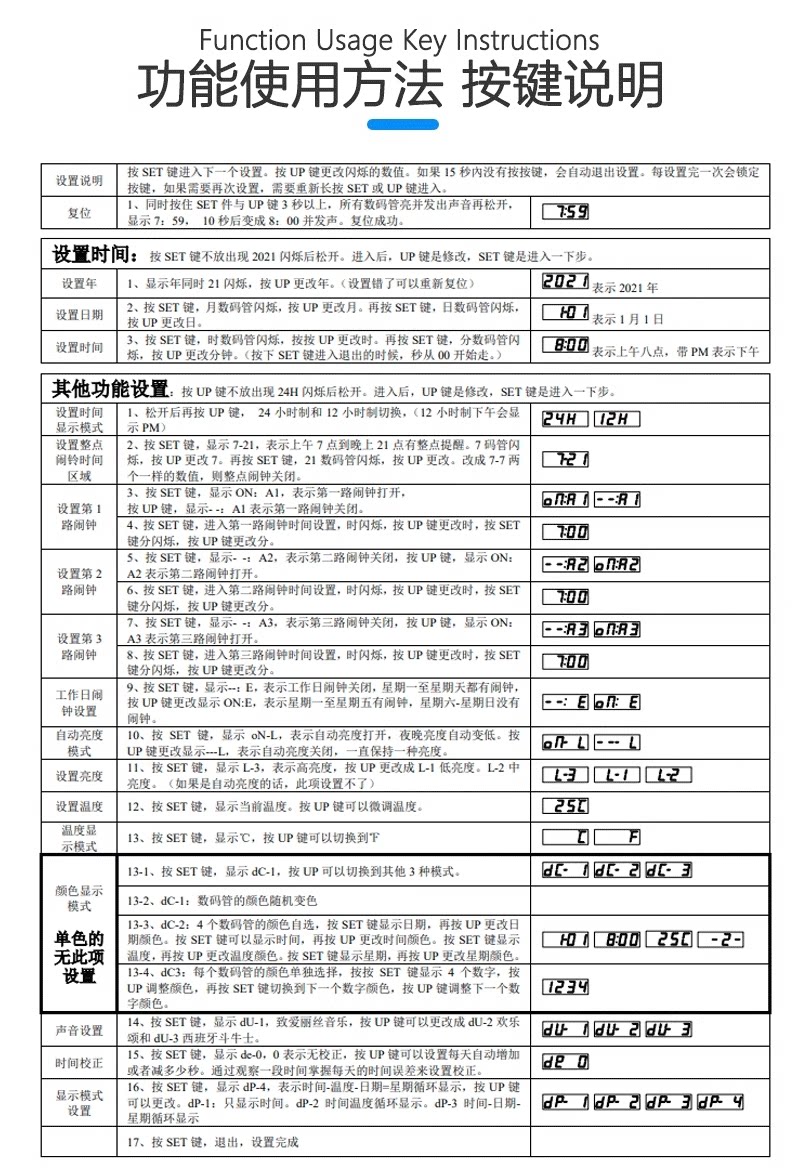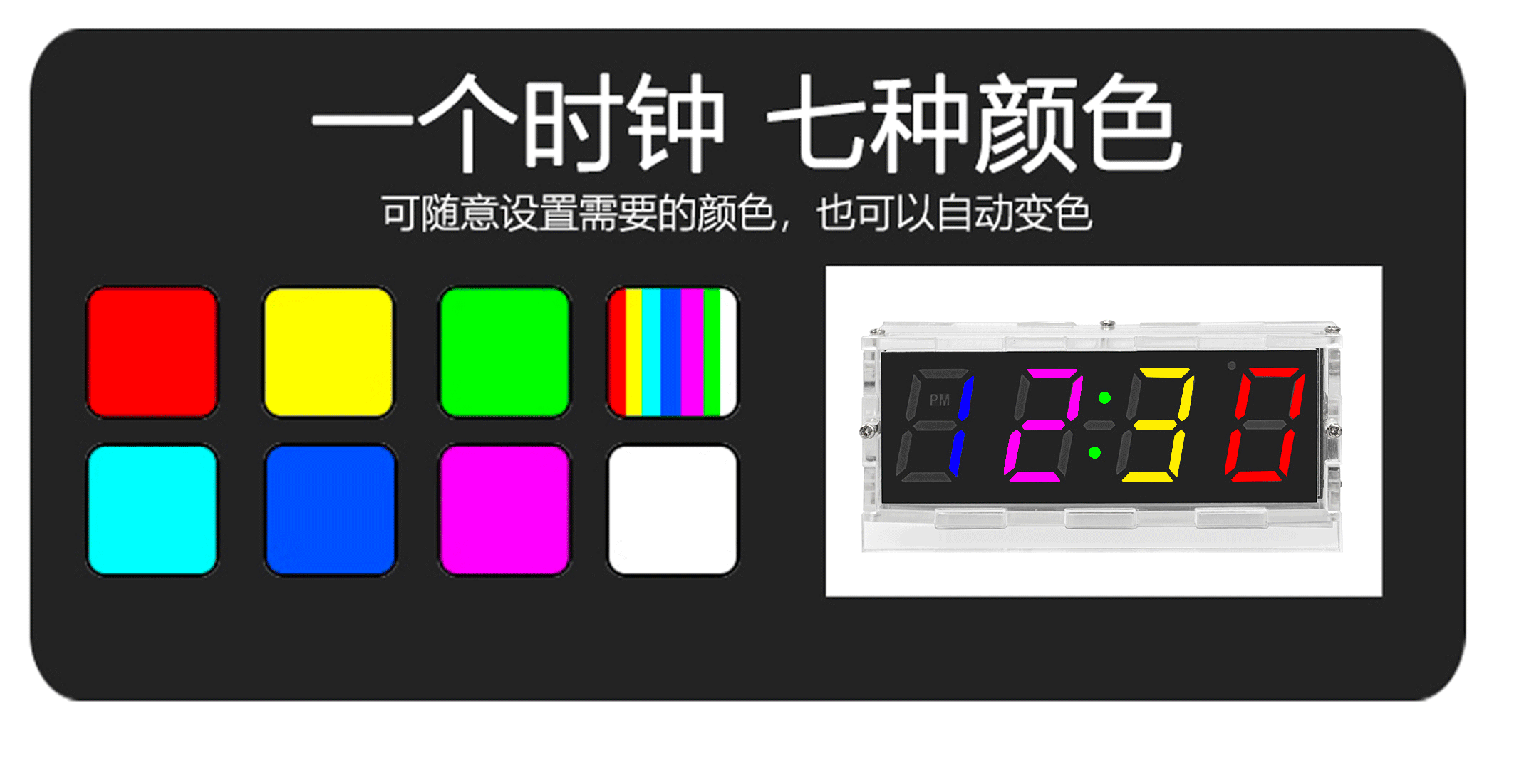 七彩变色数字时钟(带外壳)