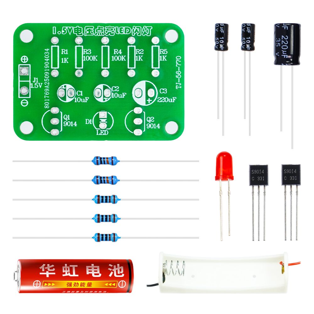 1.5V电压点亮LED闪灯焊接练习散件 实训套件 TJ-56-770