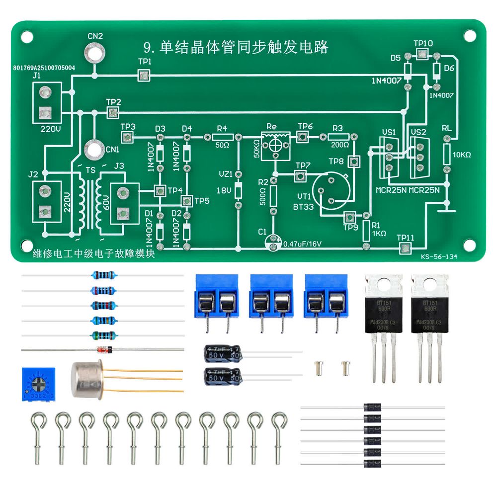 维修电工中级电子故障模块单结晶体管同步触发电路套件KS-56-134