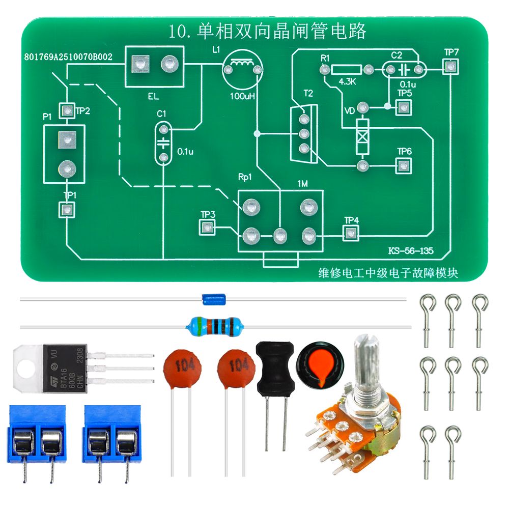 维修电工中级电子故障模块单相双向晶闸管电路套件KS-56-135