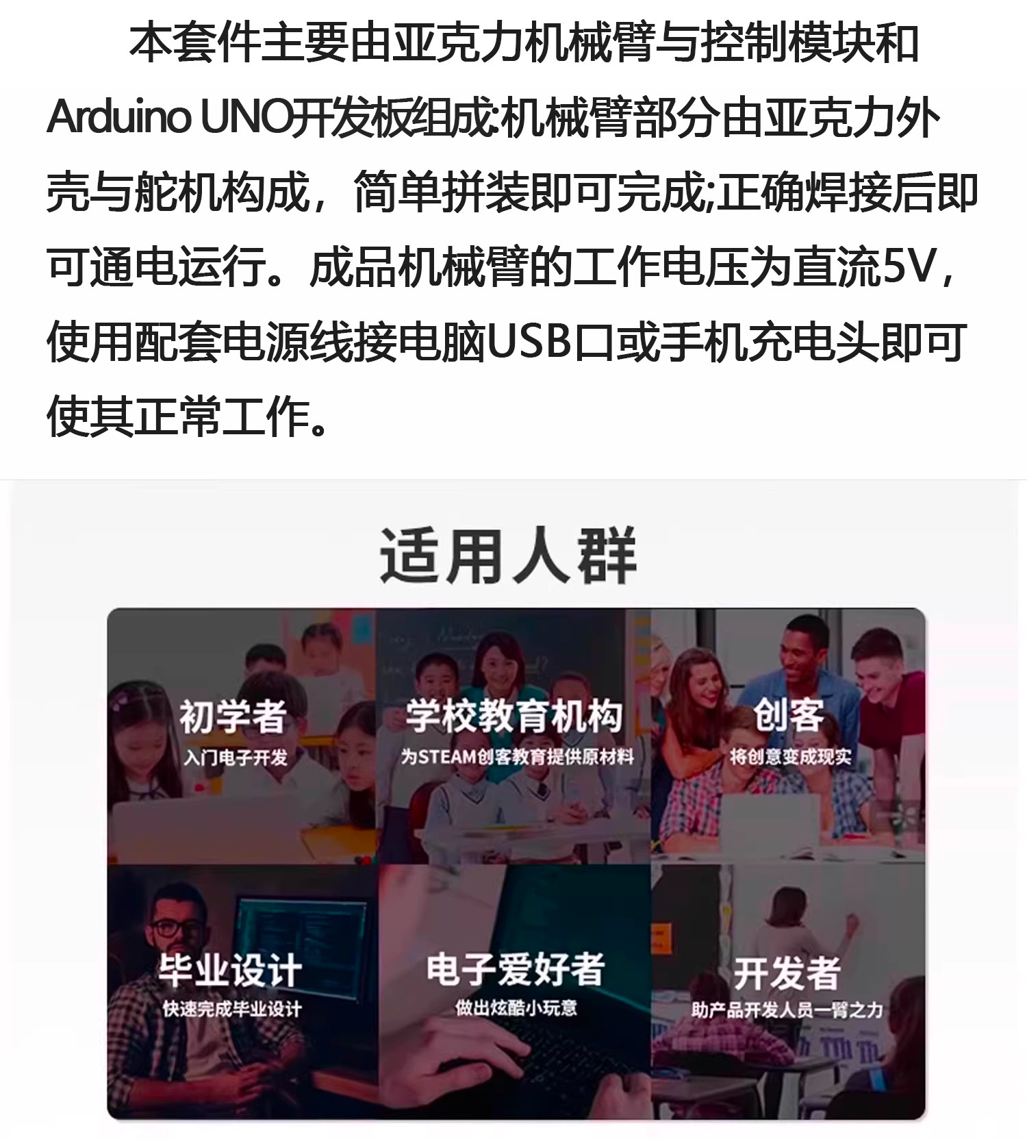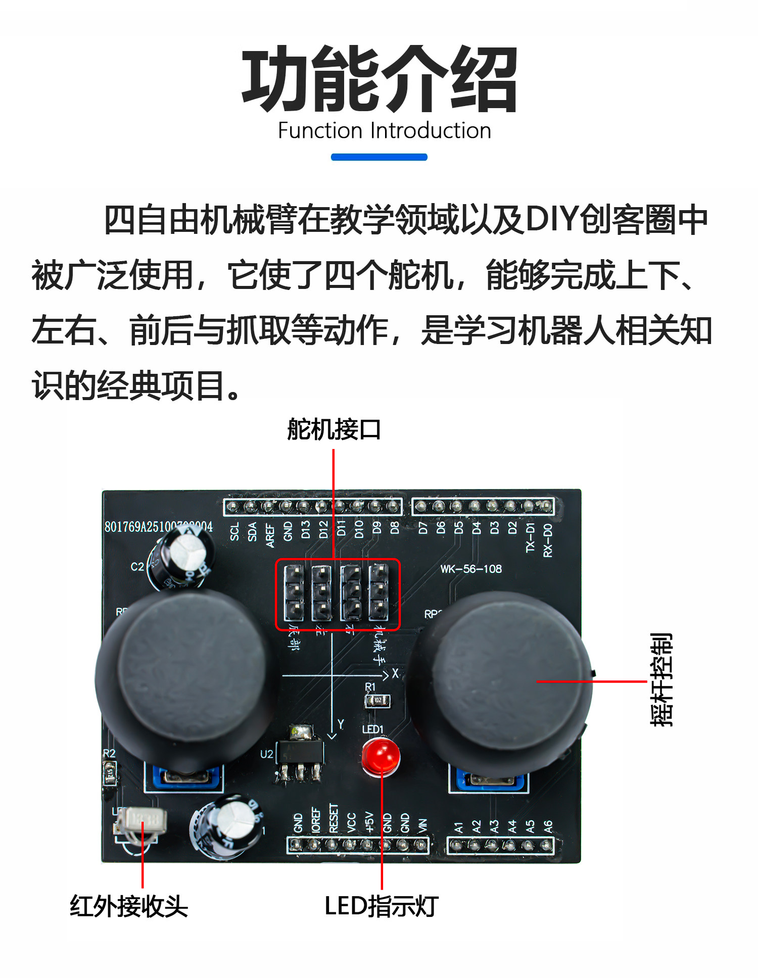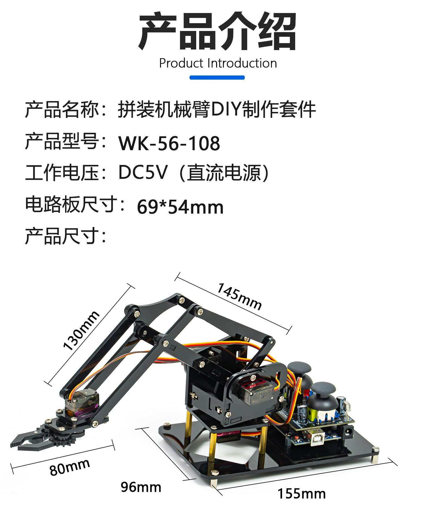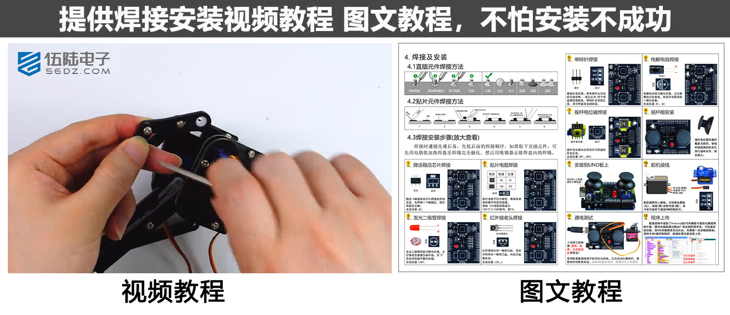 4自由度机械臂拼装DIY制作套件UNO创客Arduino编程学习WK-56-108