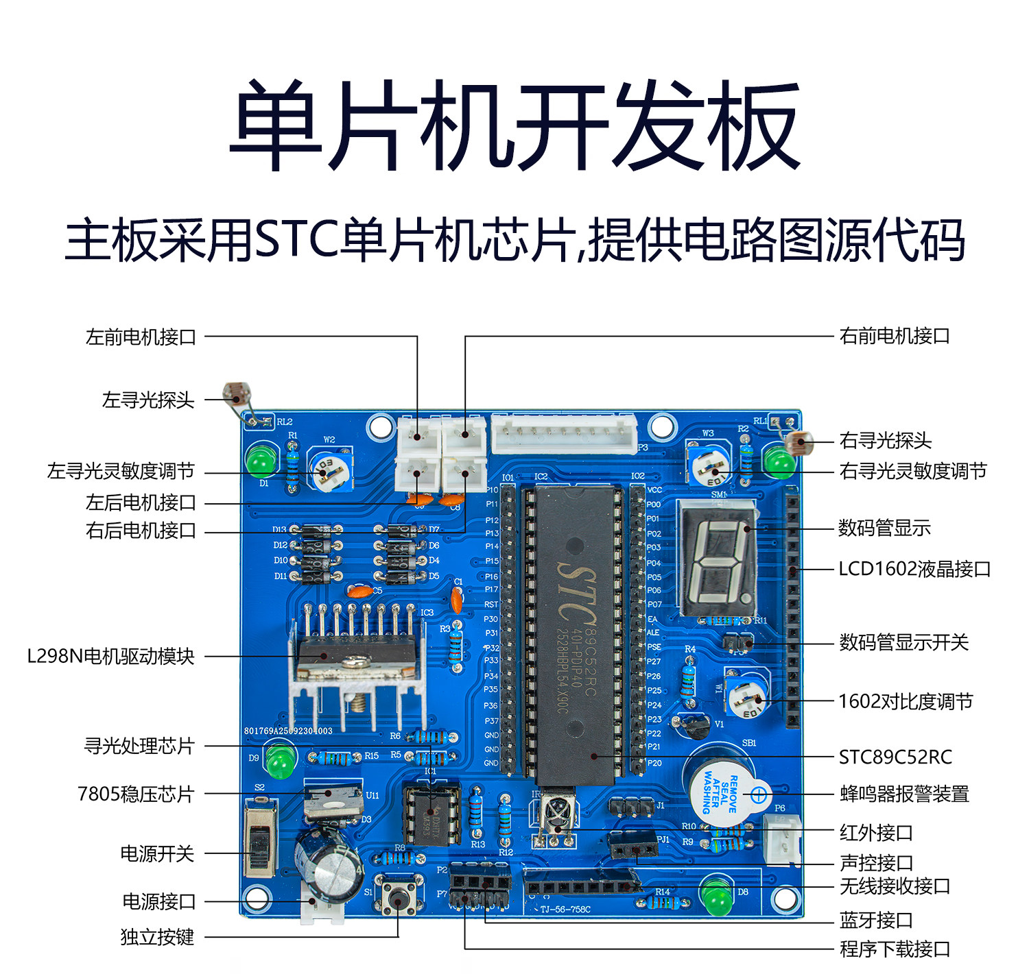 单片机智能车套件红外循迹避障**声波测距无线遥控蓝牙TJ-56-758