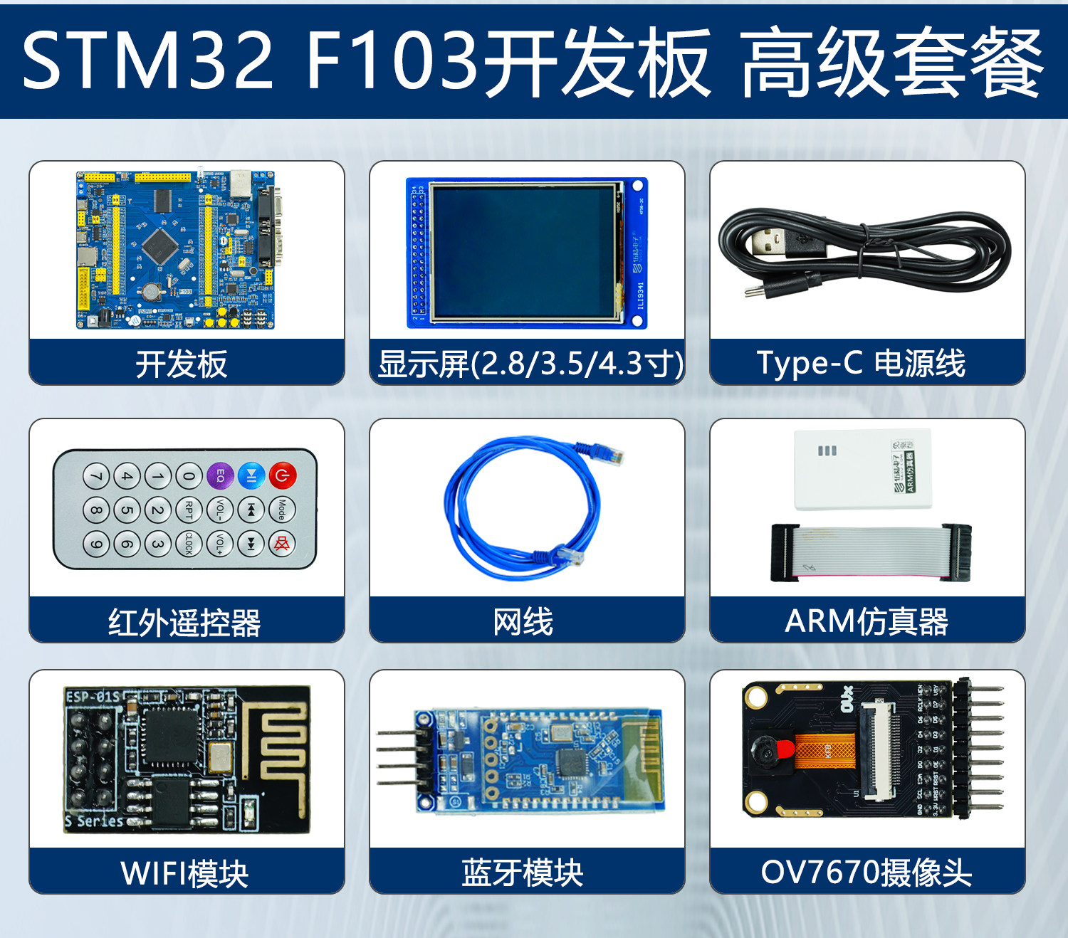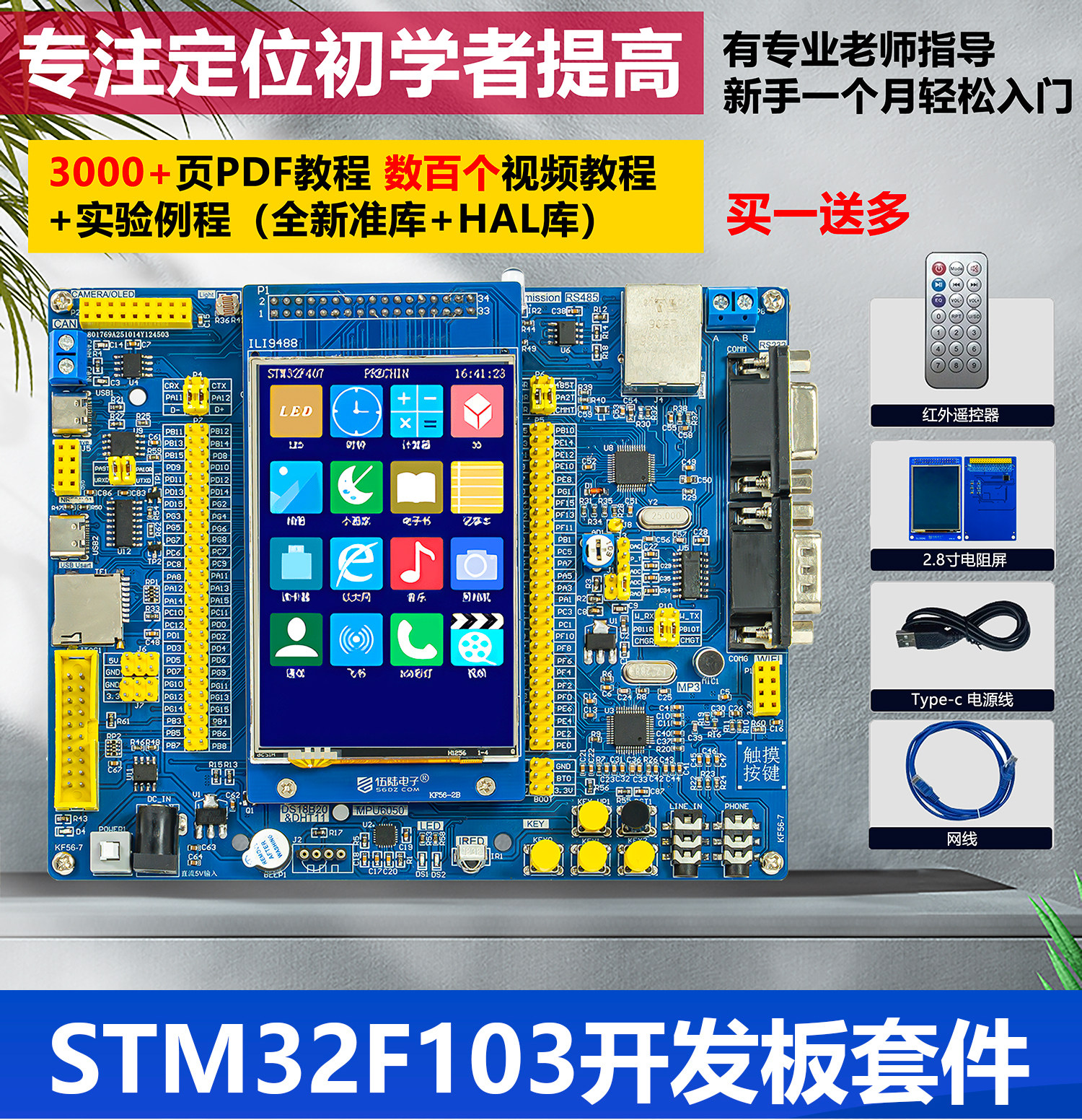 初级(开发板+屏幕+电源线+遥控器+网线)