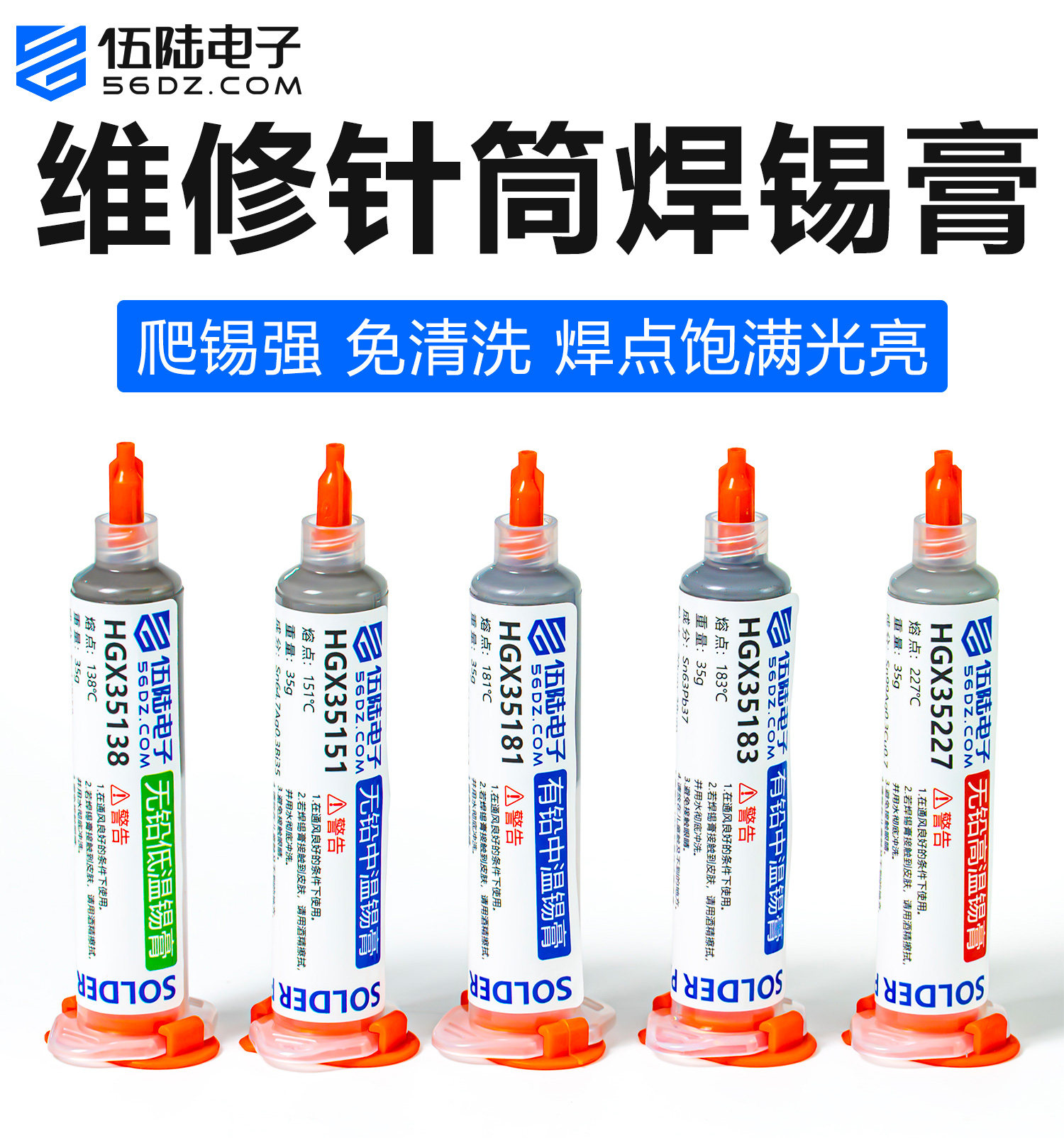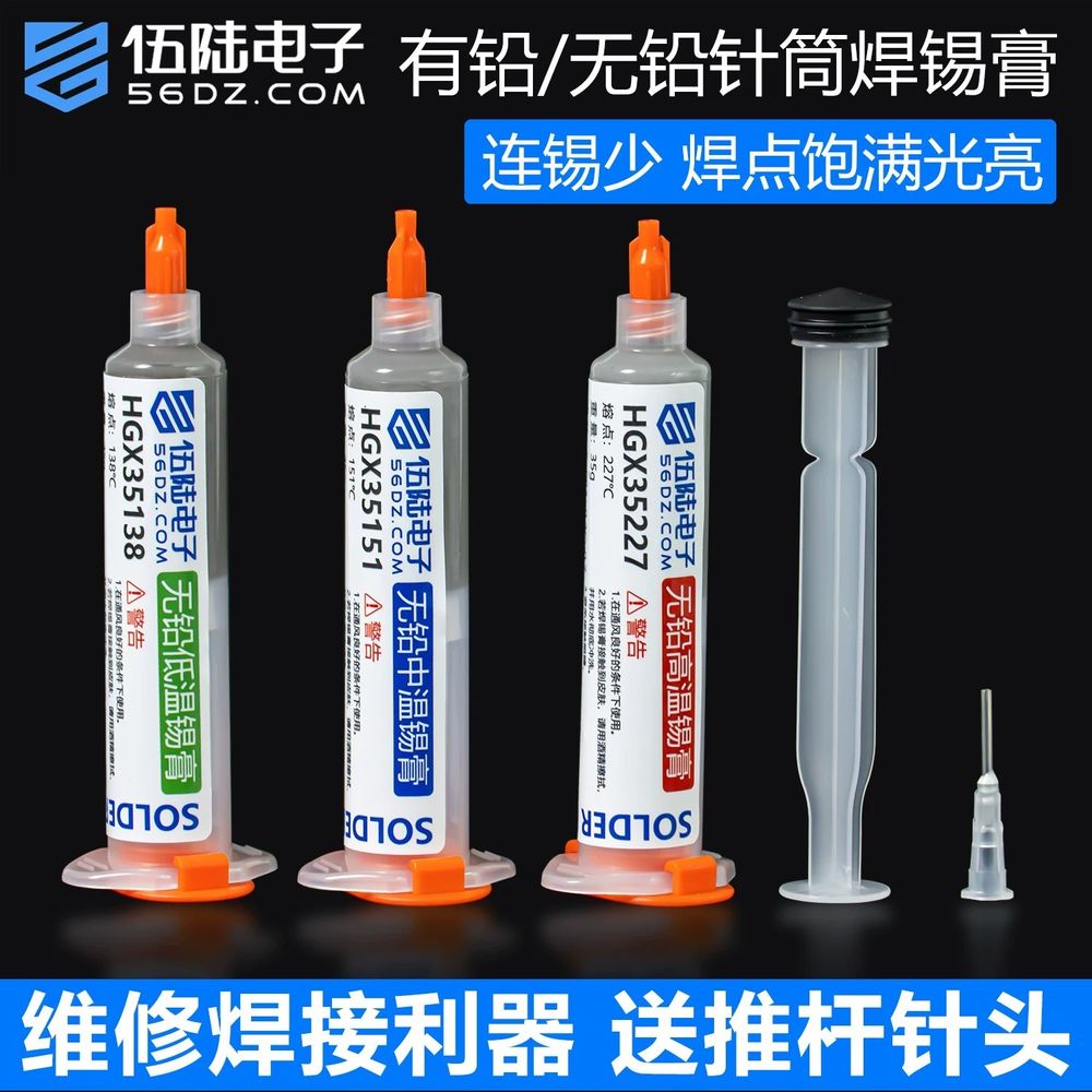伍陆电子中低高温无铅焊锡膏电路板维修焊接锡浆贴片BGA针筒锡膏