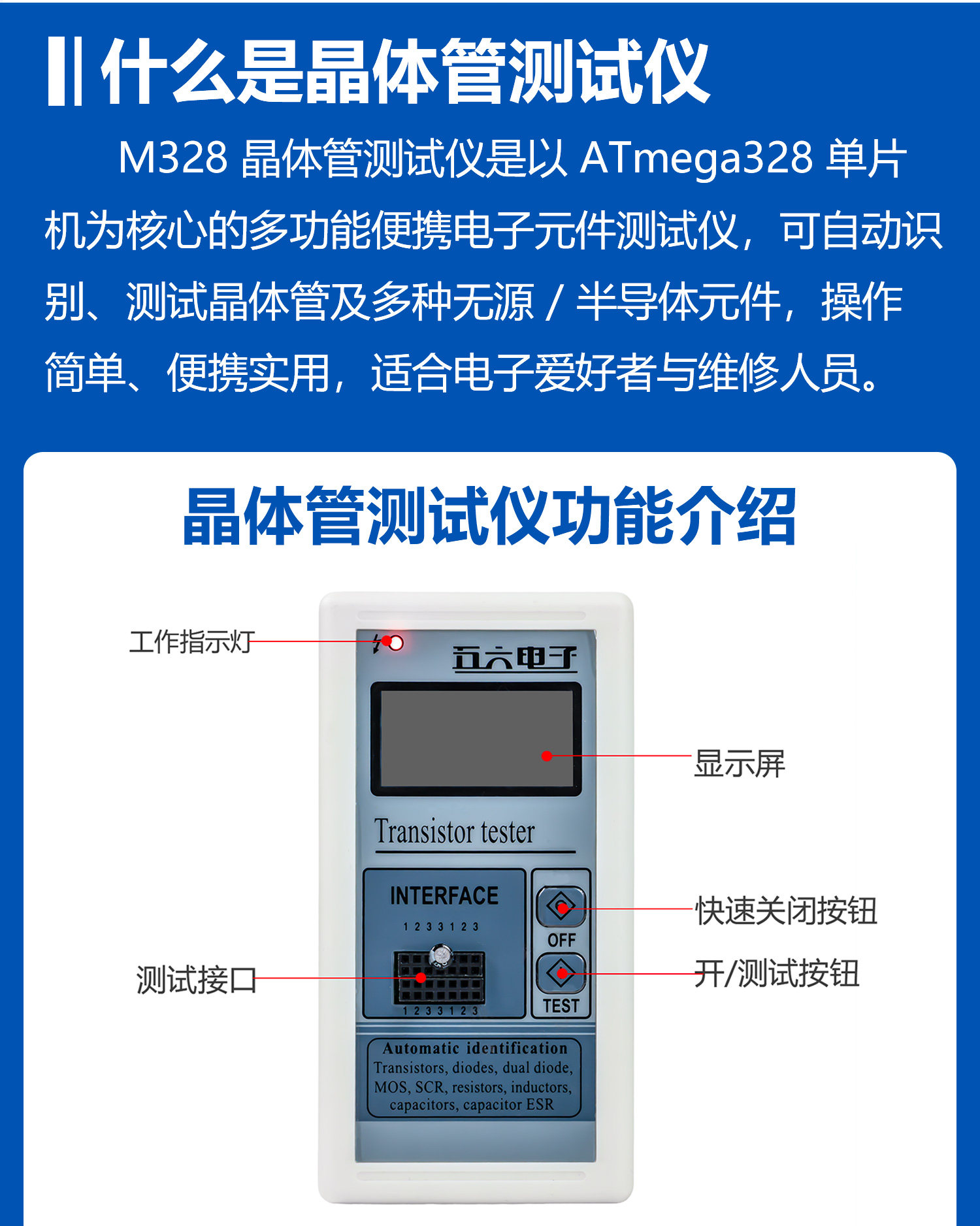 伍陆电子M328晶体管测试仪电阻电容电感二极管可控硅测量ESR仪表WK-56-70