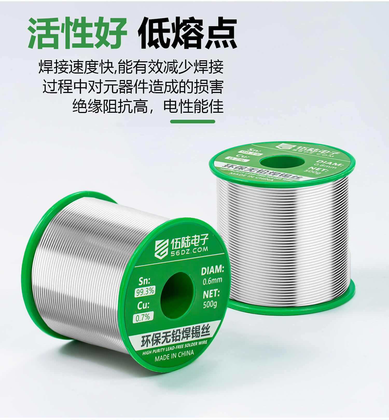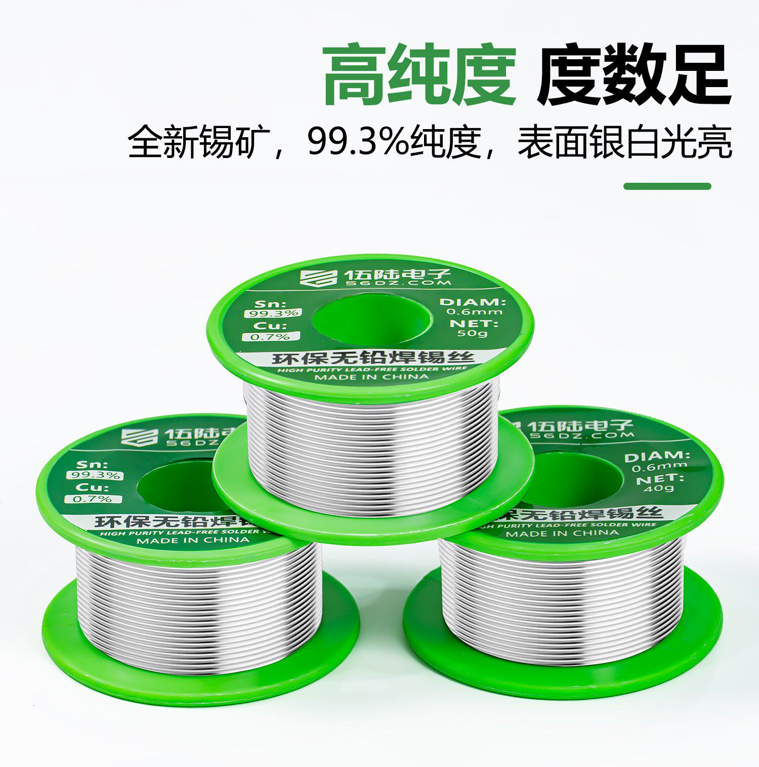 伍陆电子无铅环保高纯度焊锡丝含锡99.3带松香电烙铁维修锡线