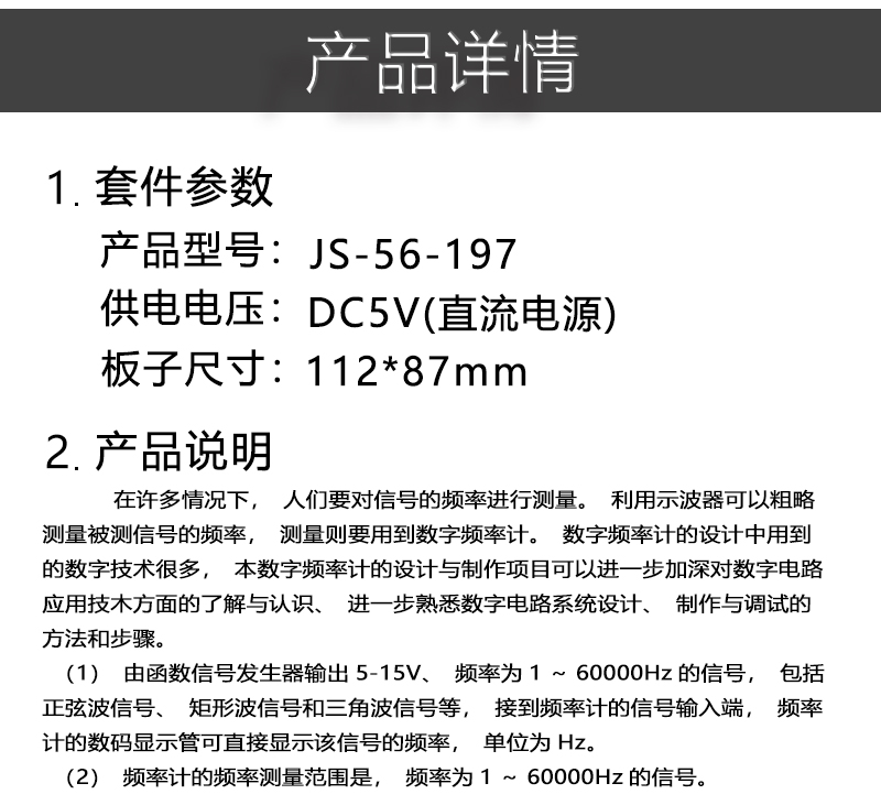 竞赛套件 频率计套件辽宁省中职技能竞赛电子装调应用故障检测板JS-56-197