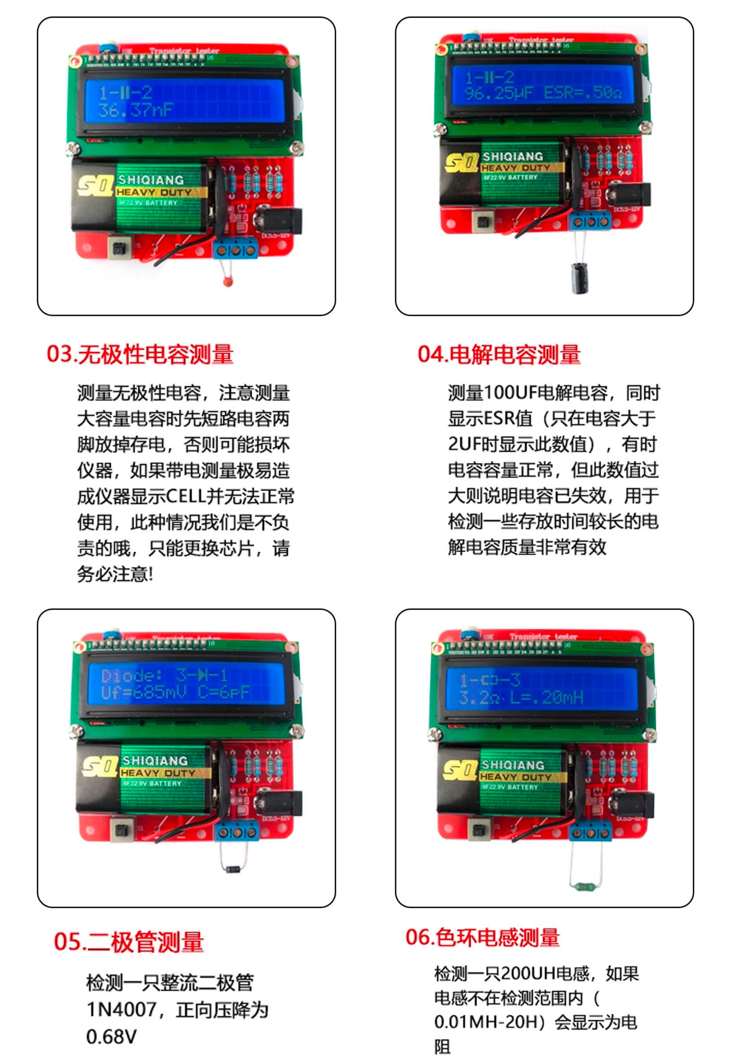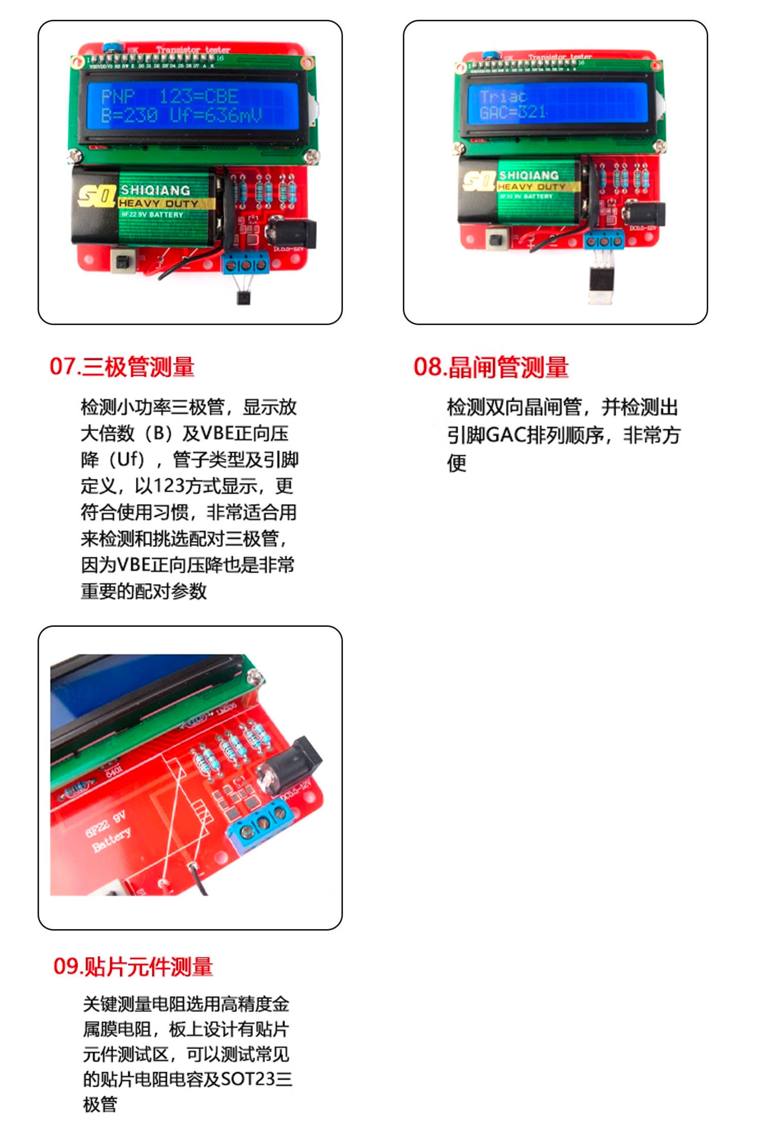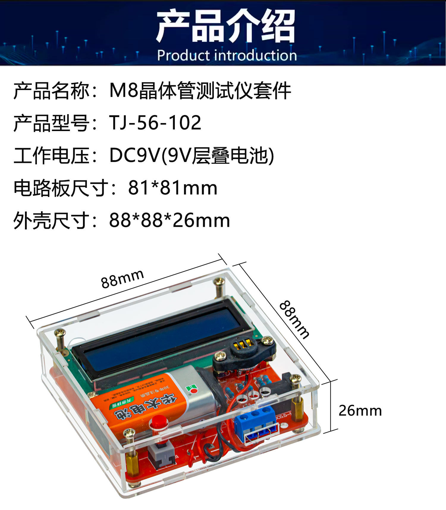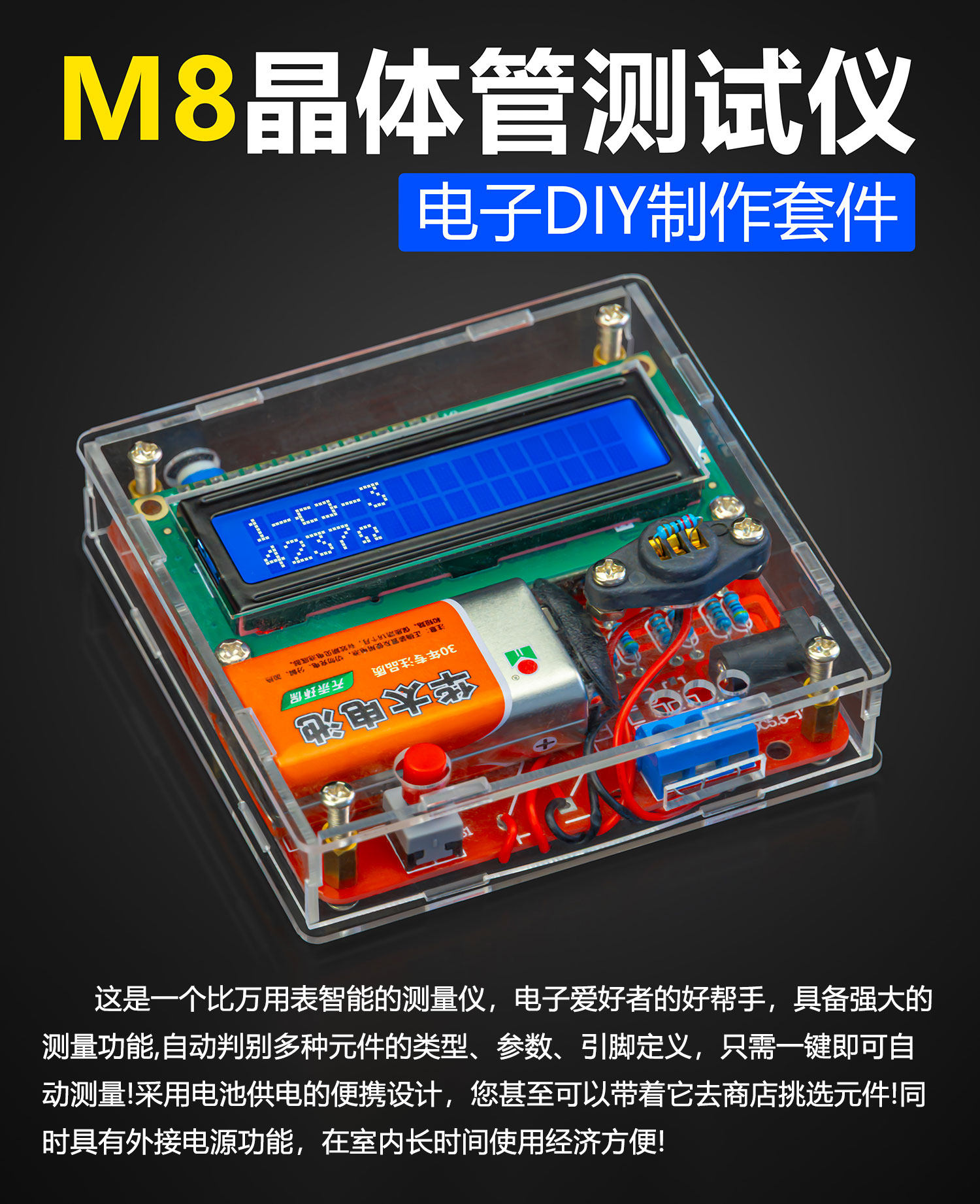 M8晶体管测试仪测电阻电容三极管电感ESR表电子DIY套件TJ-56-102