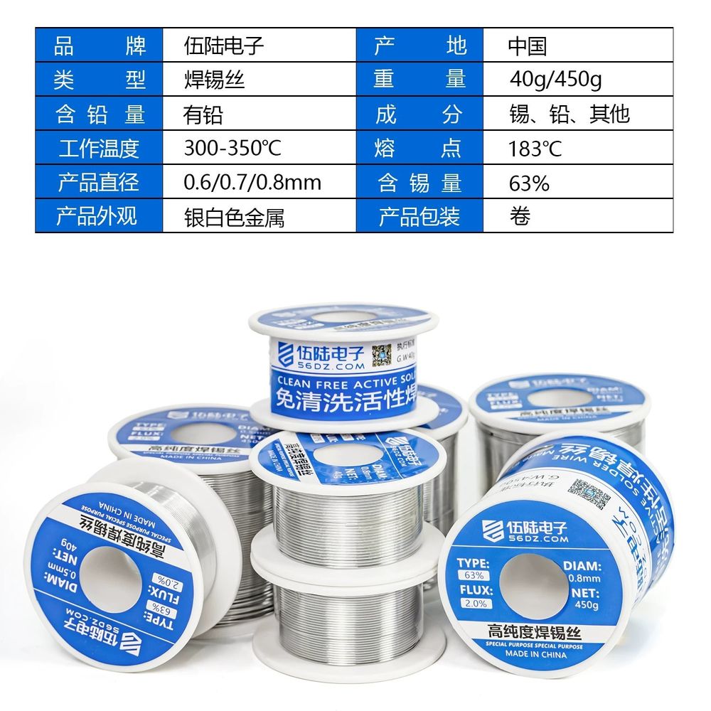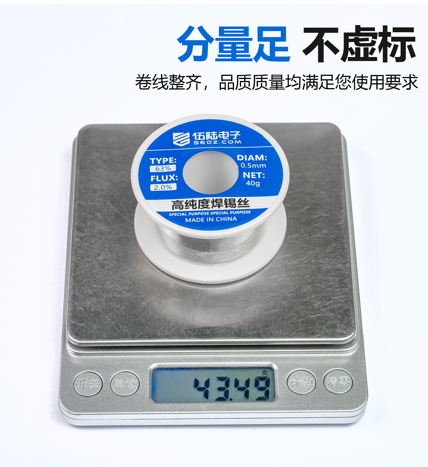 伍陆电子高纯度焊锡丝63%电子电工焊接0.6 0.7 0.8mm免清洗焊锡丝