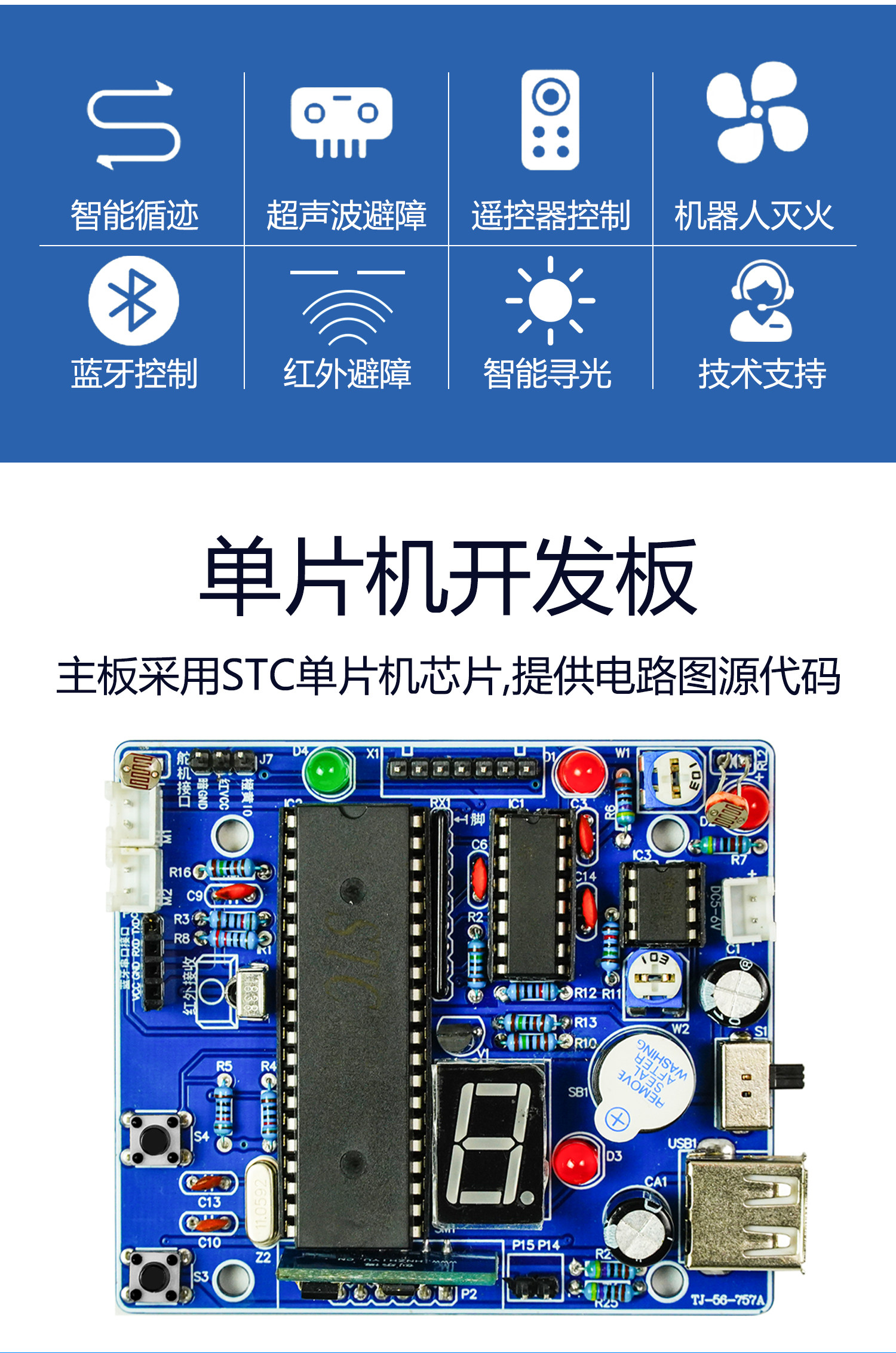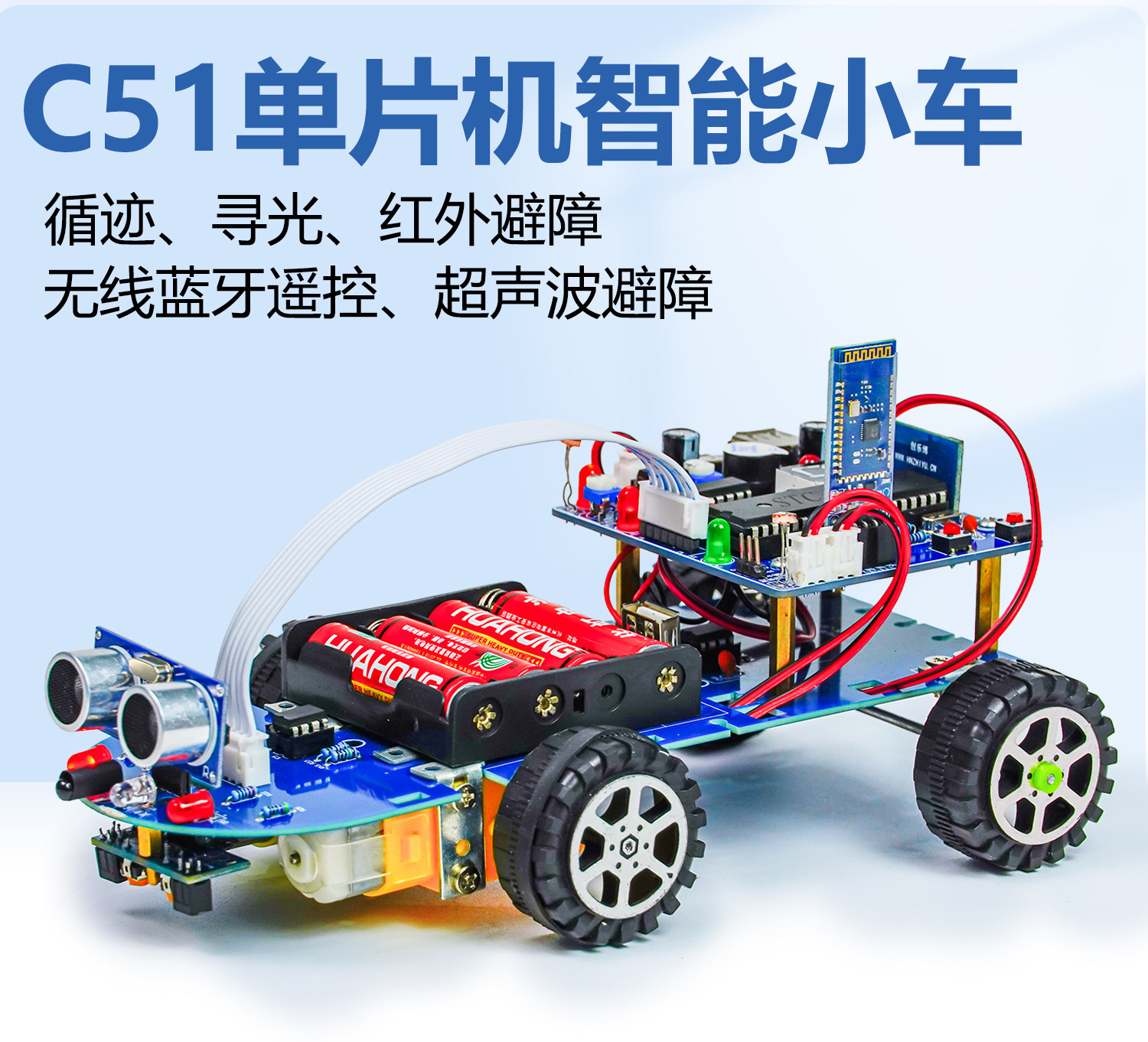 C51单片机智能小车**声波循迹避障蓝牙遥控DIY制作套件TJ-56-757