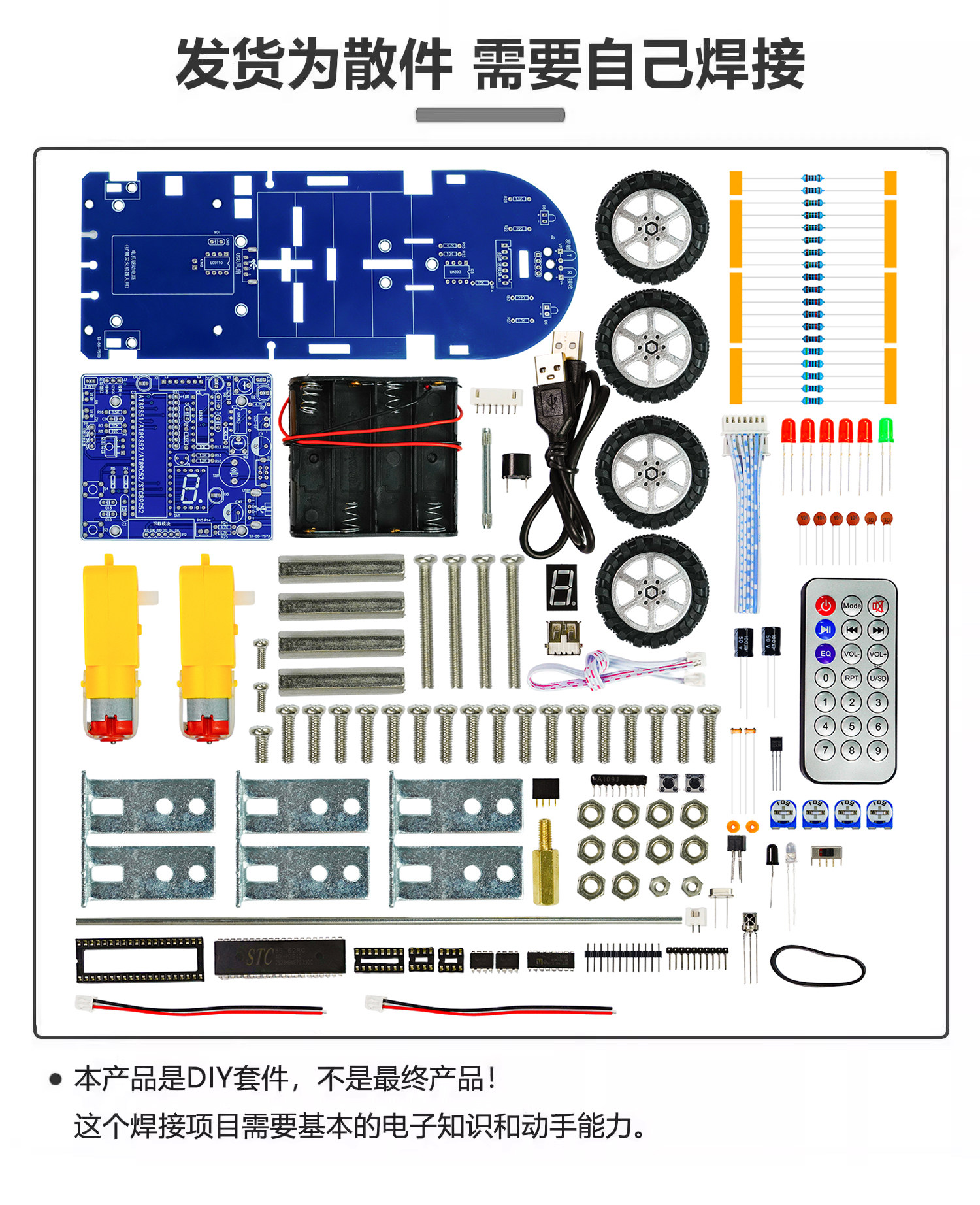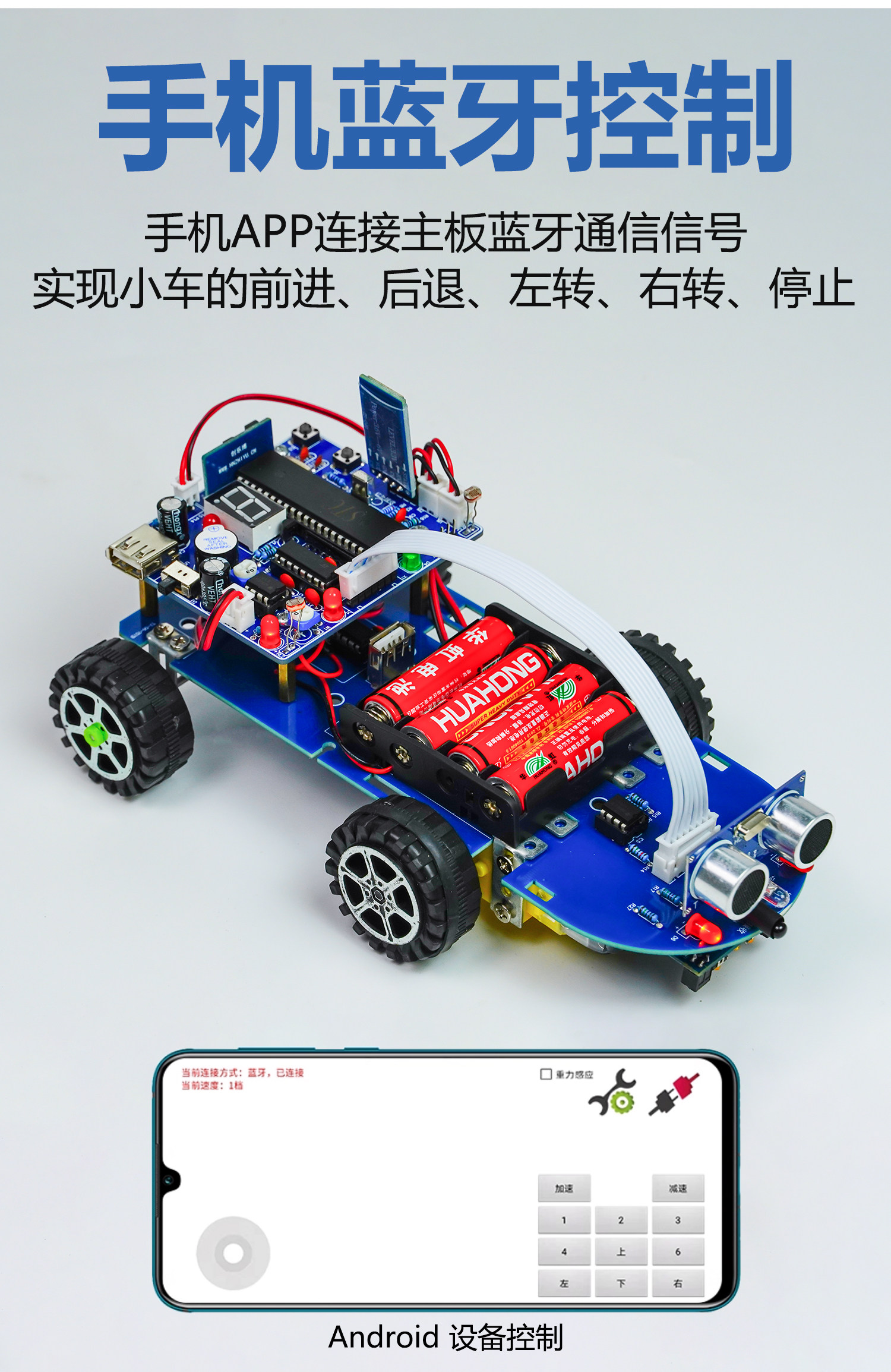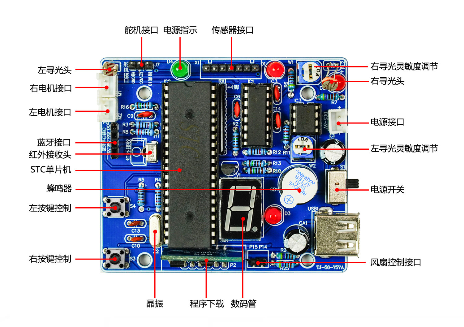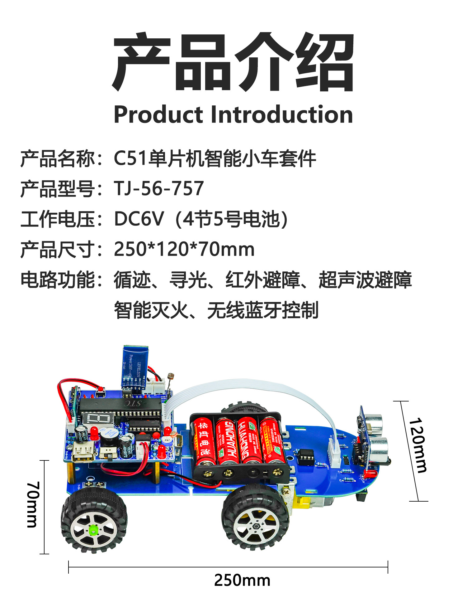 蓝牙智能车DIY套件单片机循迹避障遥控小车焊接组装TJ-56-127
