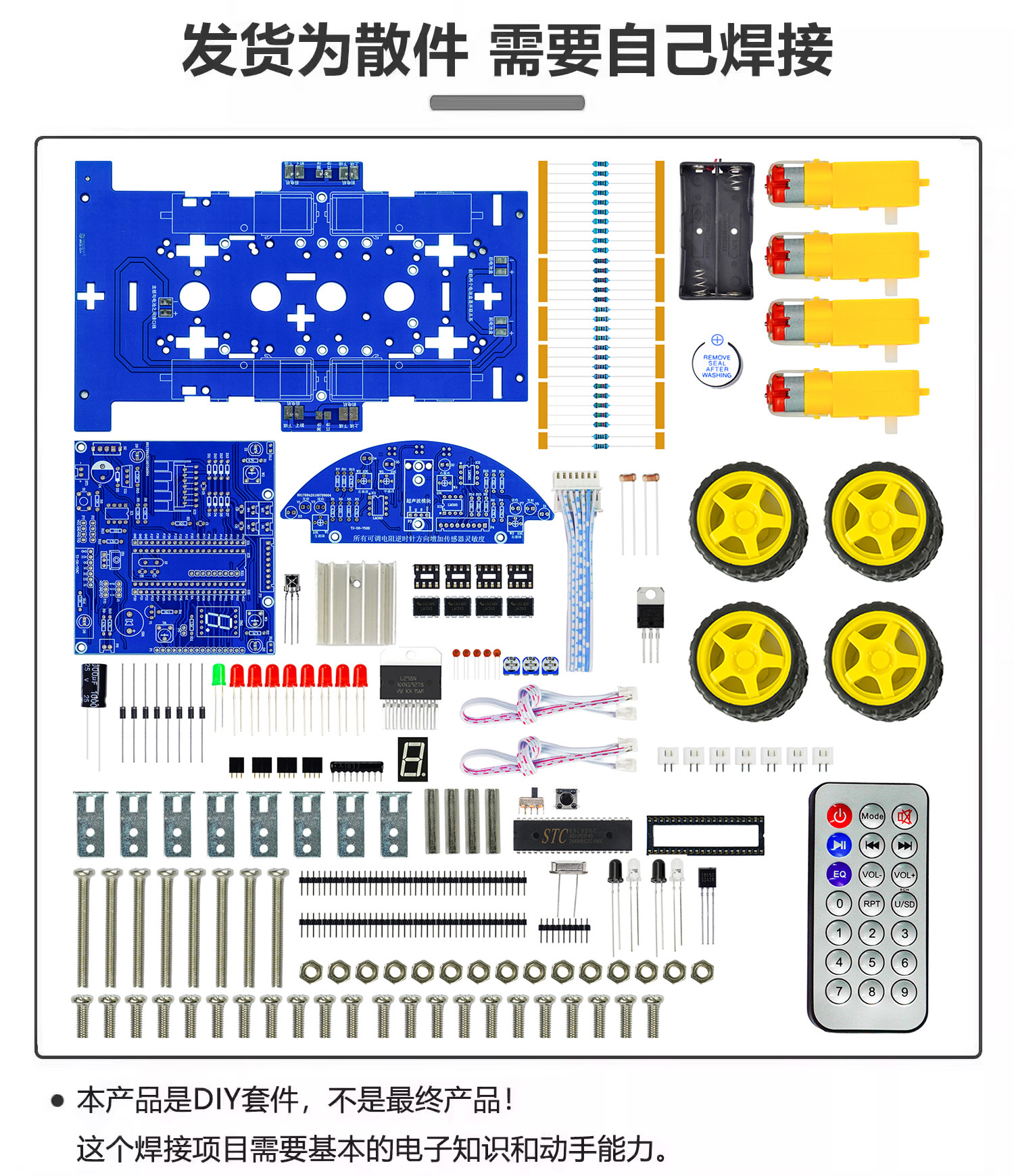 蓝牙智能车DIY套件单片机循迹避障遥控小车焊接组装TJ-56-127
