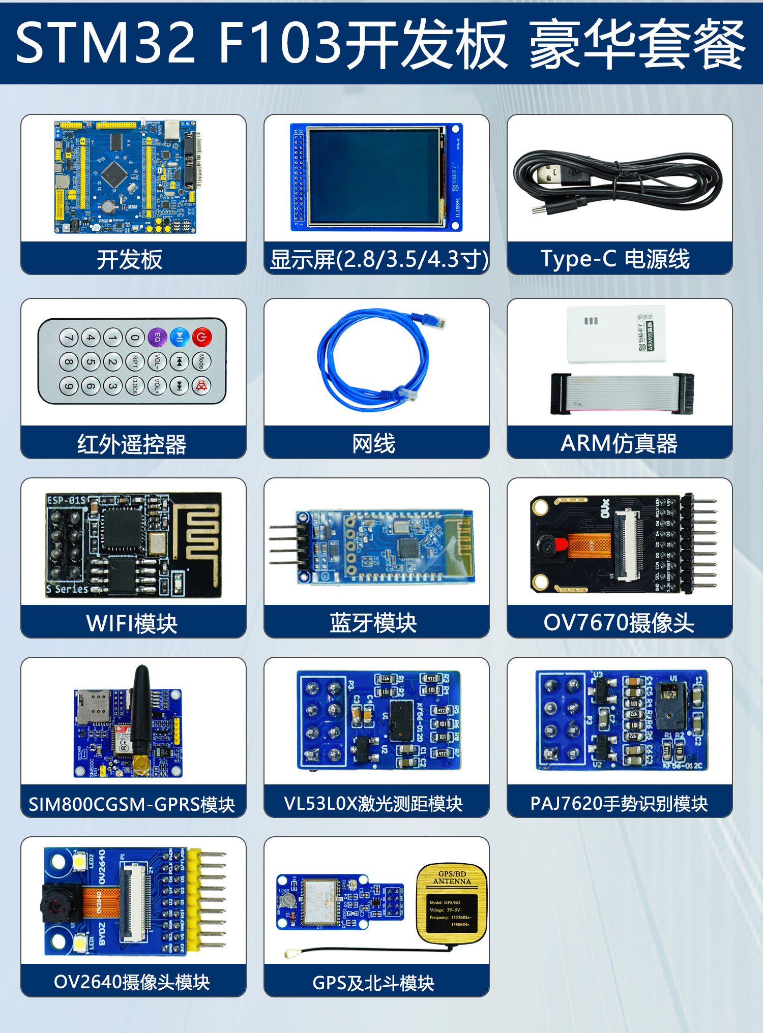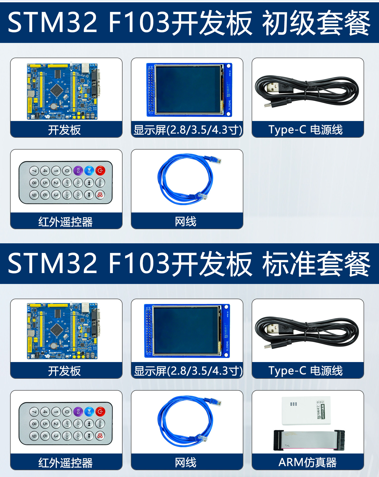 初级(开发板+屏幕+电源线+遥控器+网线)