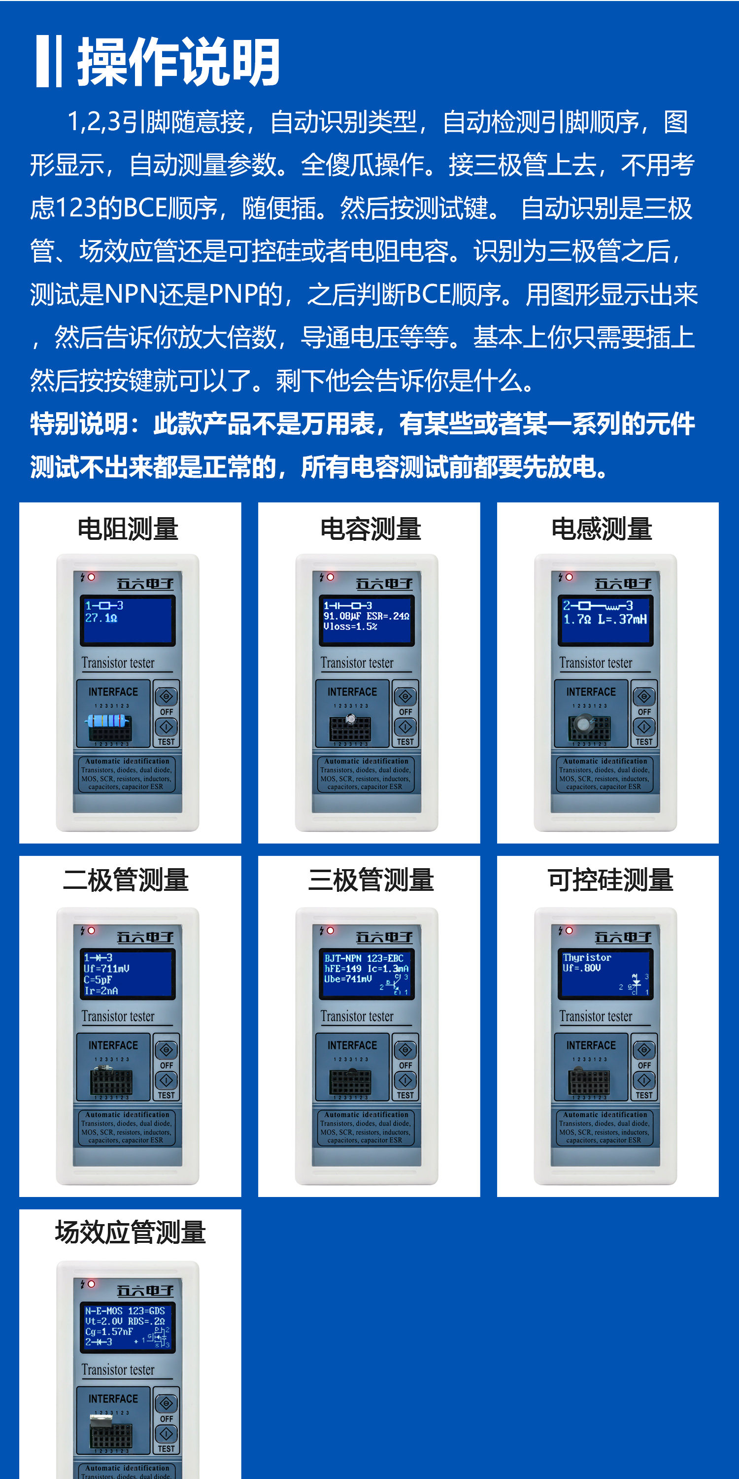 伍陆电子M328晶体管测试仪电阻电容电感二极管可控硅测量ESR仪表WK-56-70