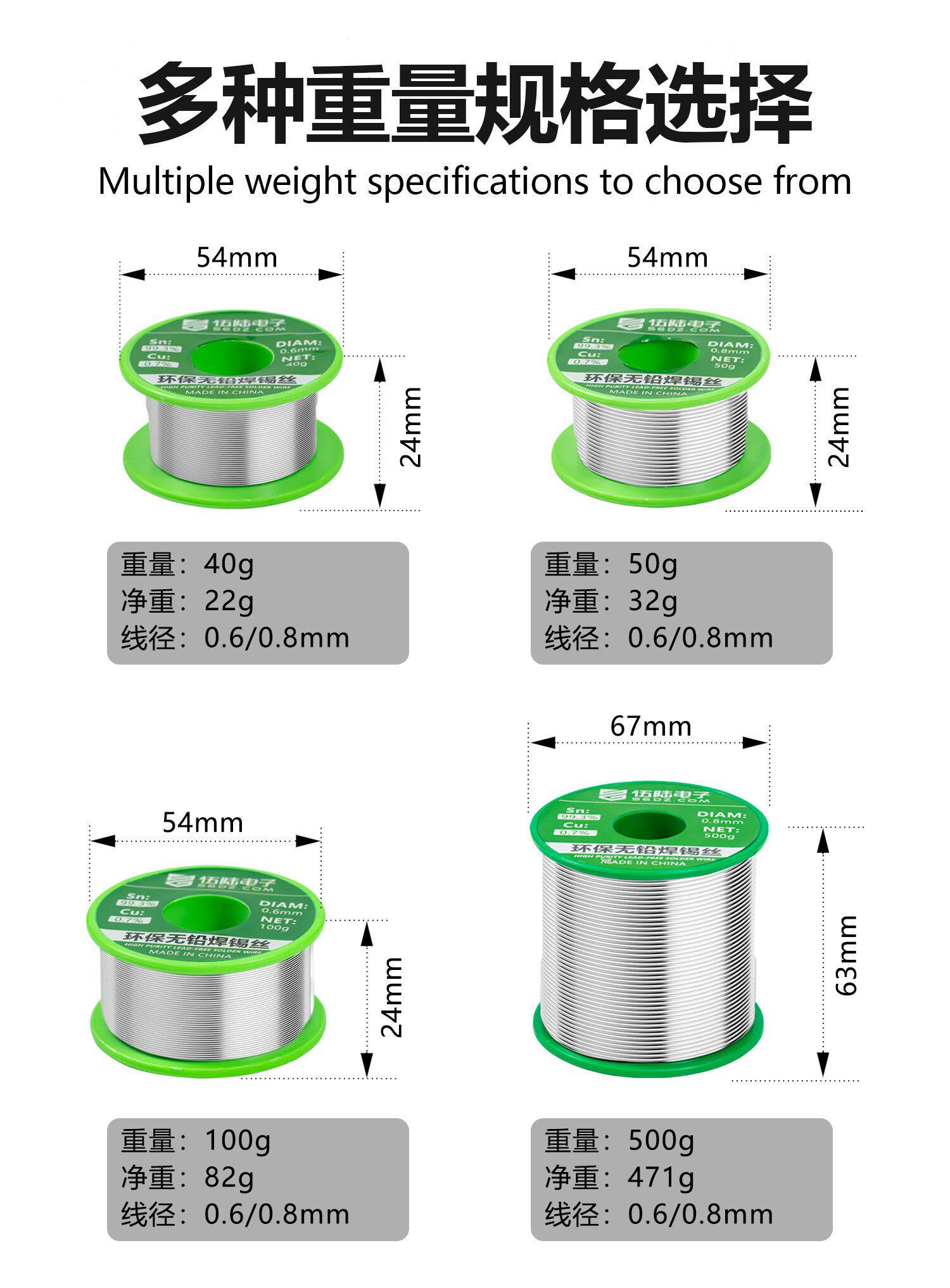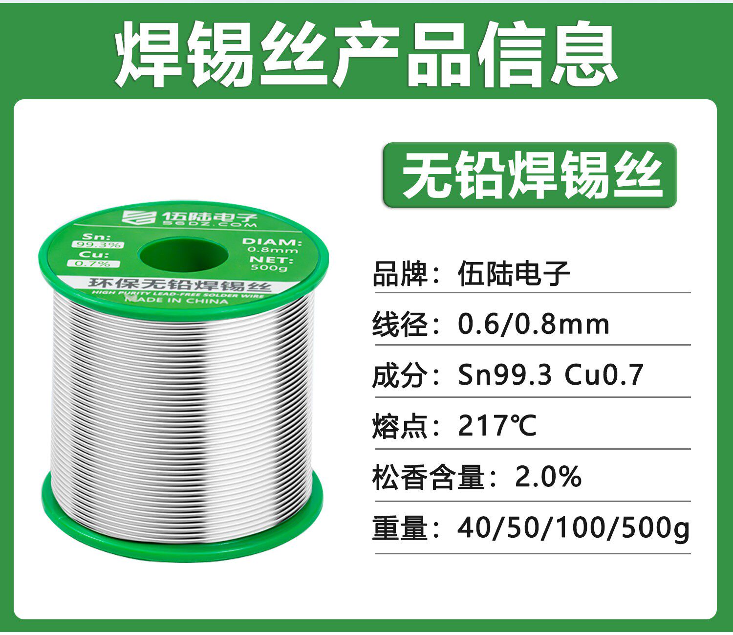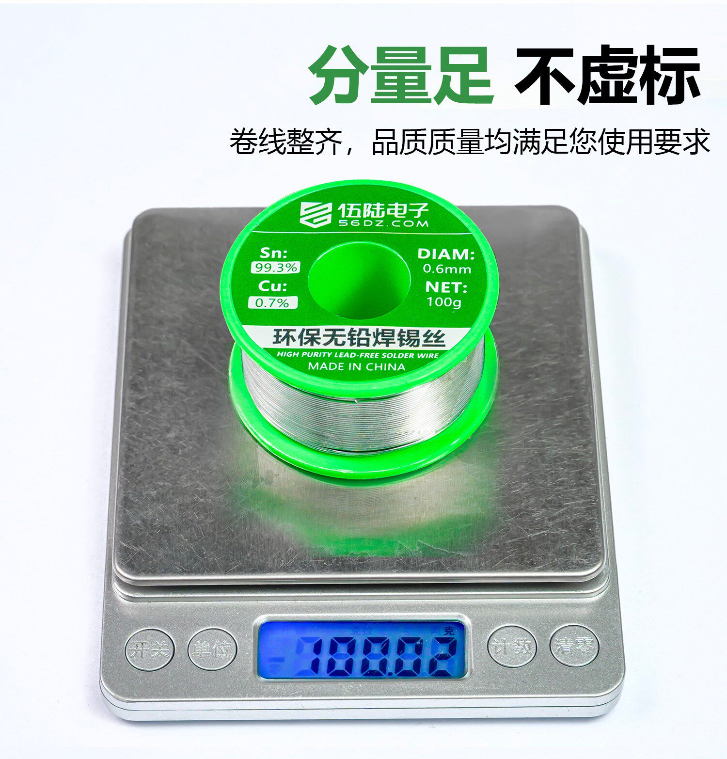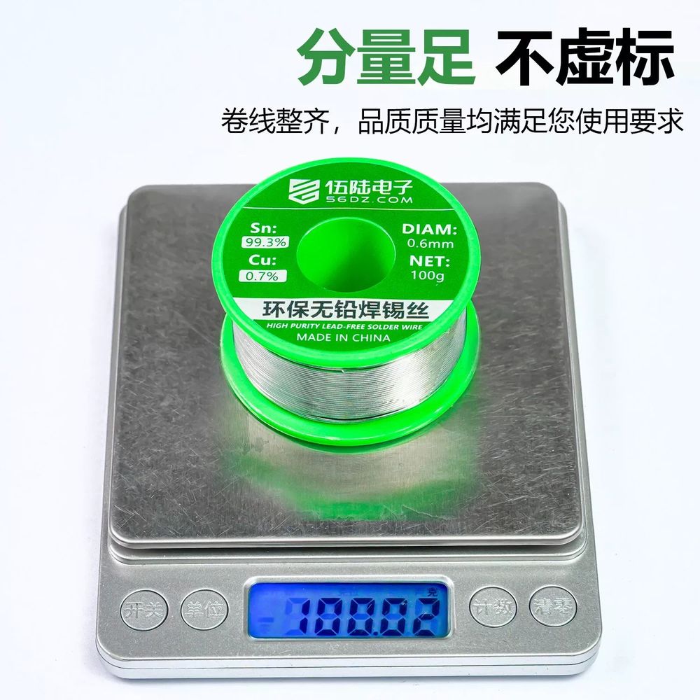 伍陆电子无铅环保高纯度焊锡丝含锡99.3带松香电烙铁维修锡线