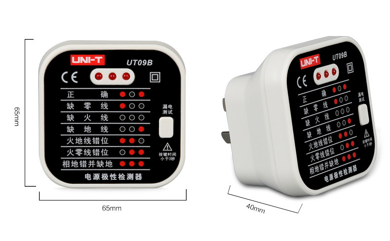 优利德UT09A/B/UT09E插座检测仪地线零线火线插头电源极性检测器